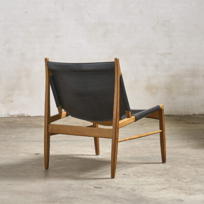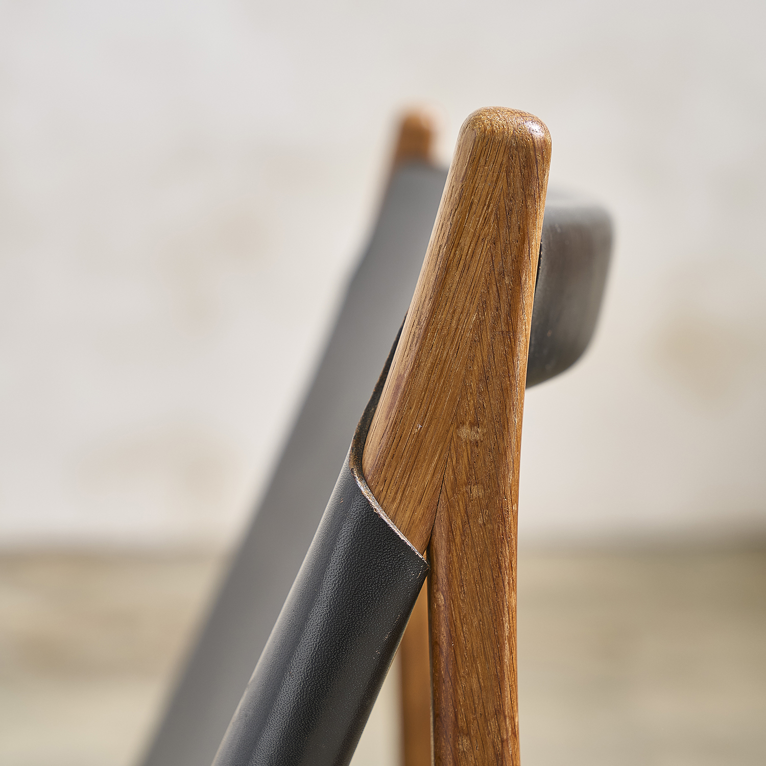 Franz Xaver Lutz – Model 1192 armchair produced by WK Möbel in the 1950s. Solid oak frame, original black leather upholstery. Leather shows some wear (see photos). H. 76 cm W. 60 cm D. 65 cm Seat: H. 38 cm W. 60 cm D. 45 cm