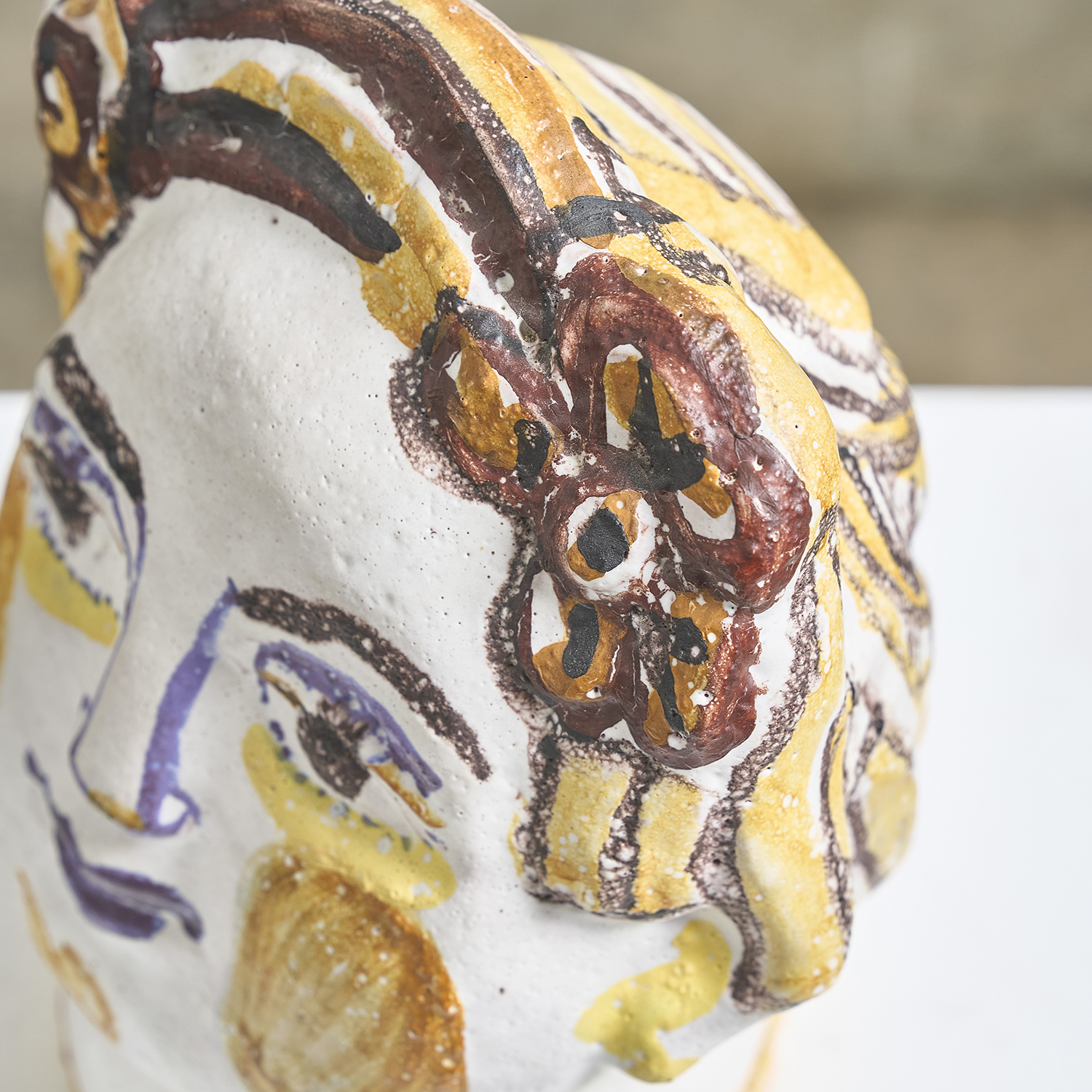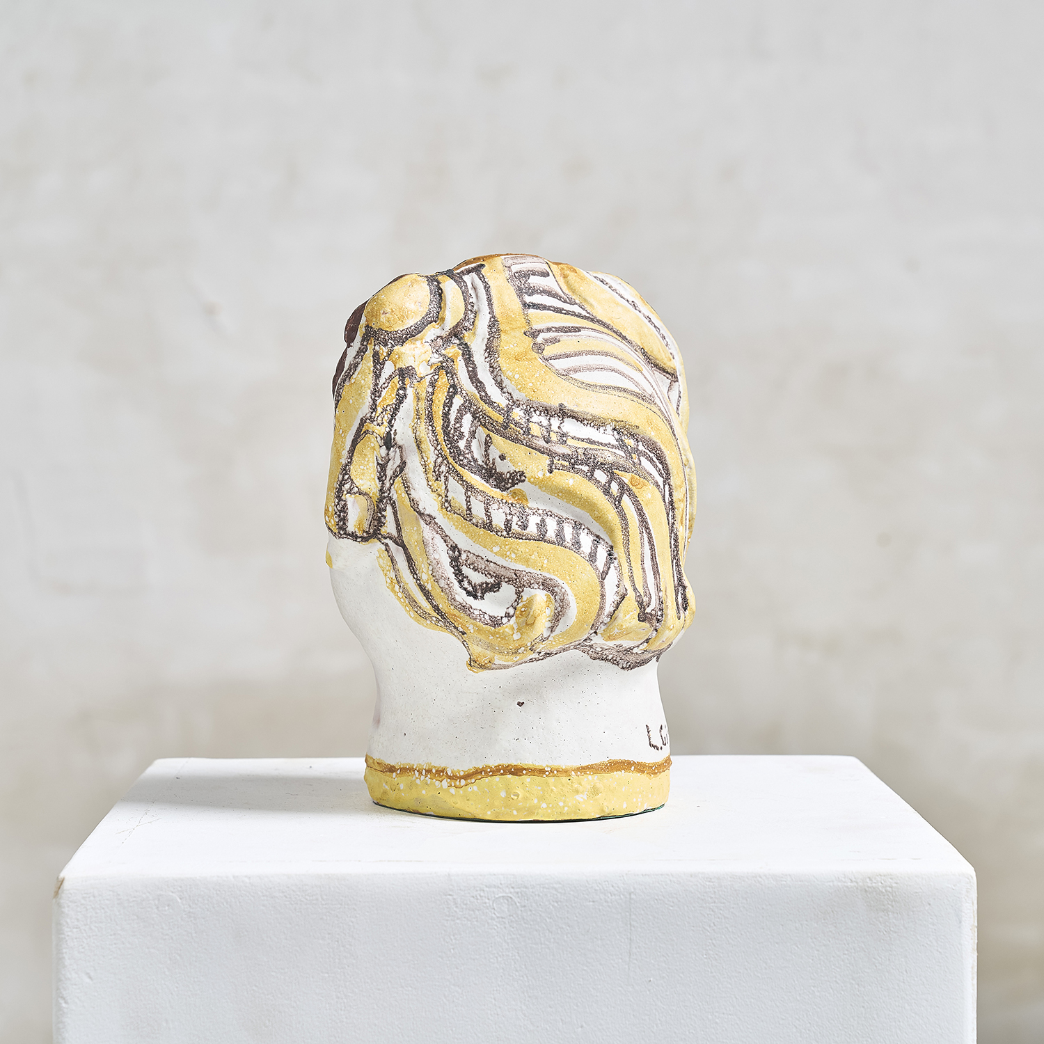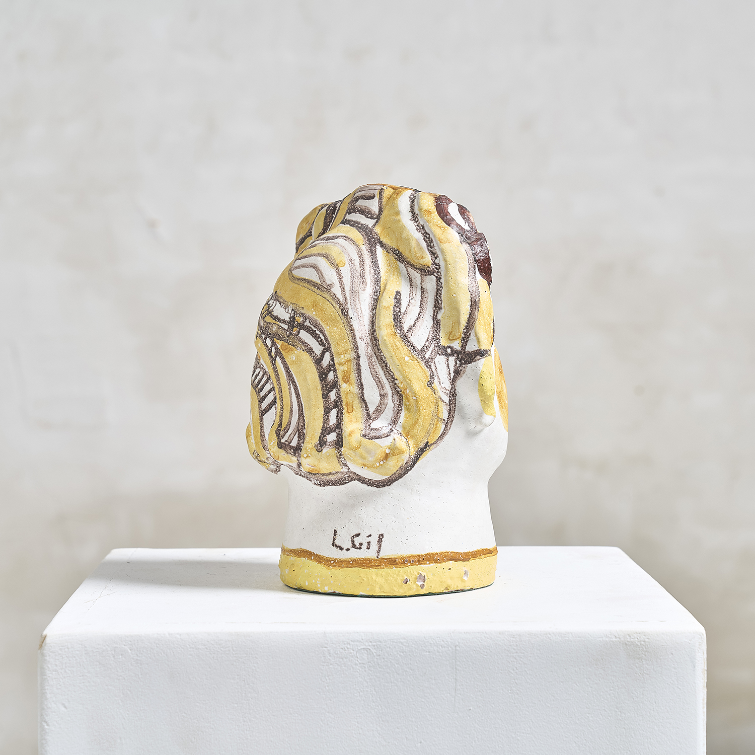 L.GIL (20th century) Head of a woman. Glazed terracotta sculpture, signed at the neck.