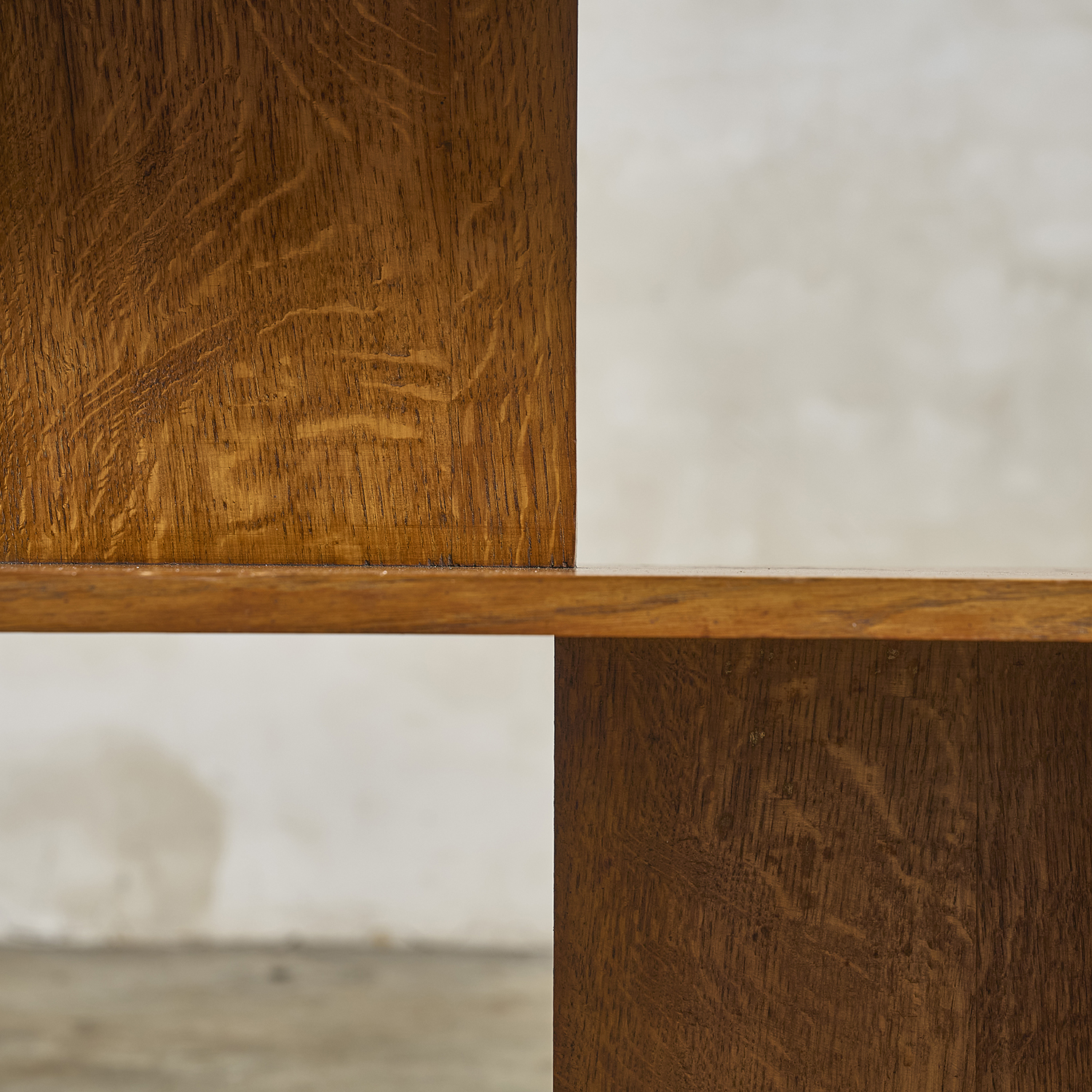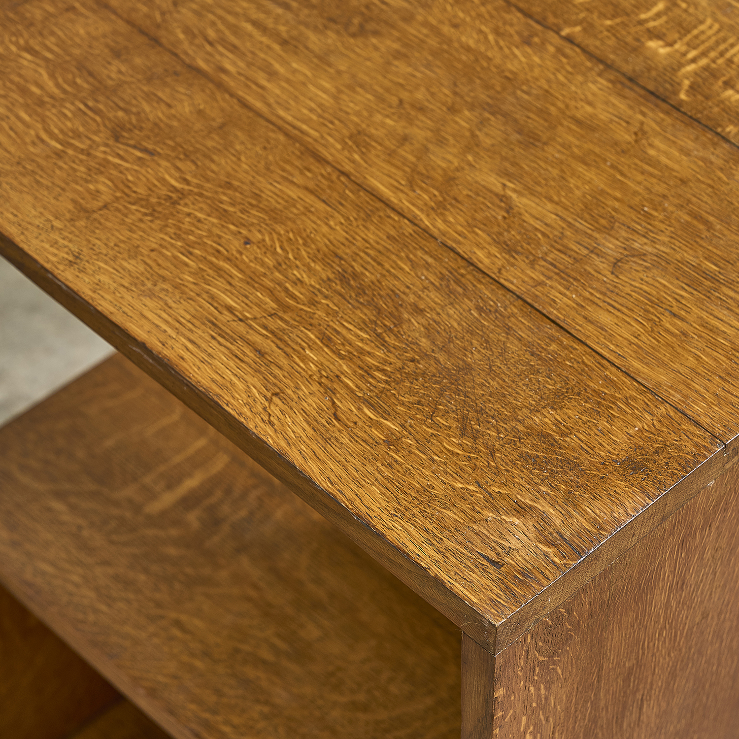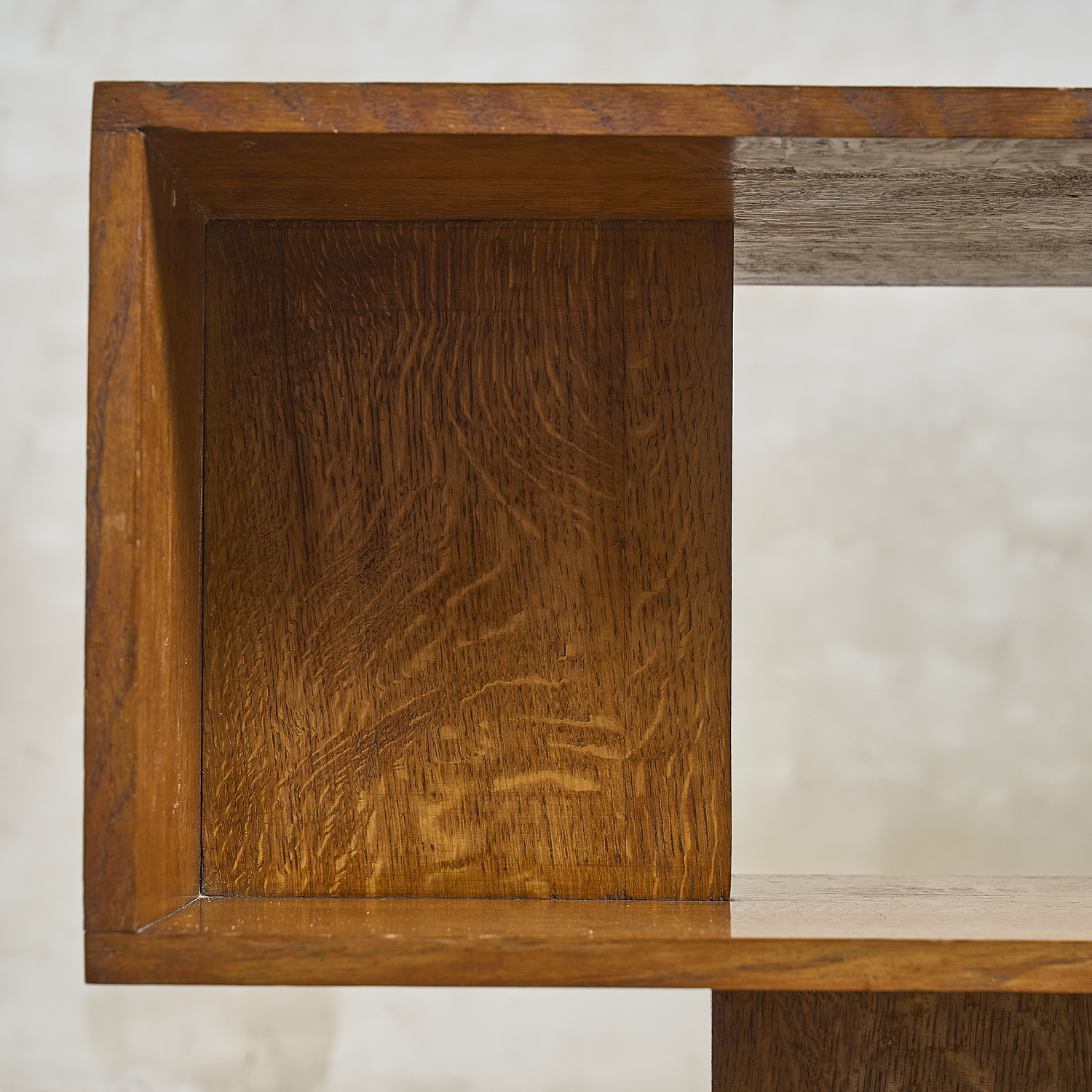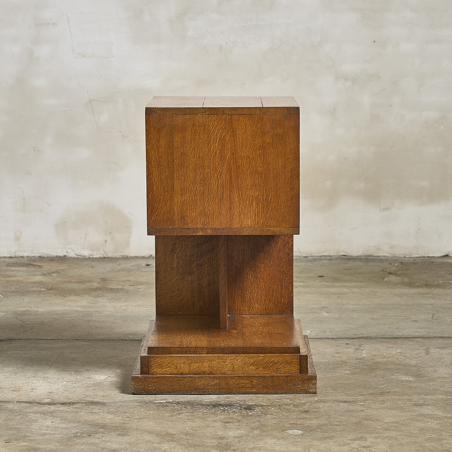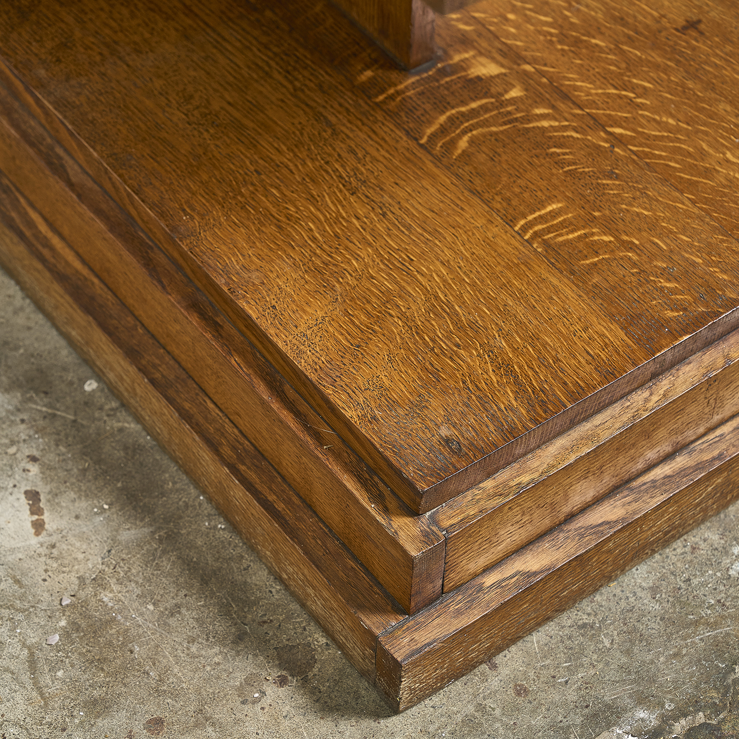 Art Deco style solid oak side table with an architectural design featuring shelves and ledges.