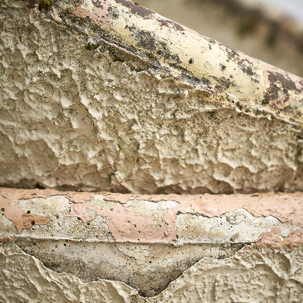Set of 2 garden basins from the 60s. Concrete basins in the shape of a “ball” with a roughcast finish. Nice patina, there is still a little moss in places. Height: 28cm Diameter: 54cm