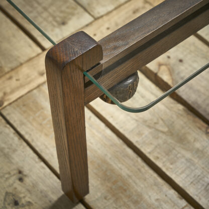 Table basse à plateau circulaire en bois de placage et chêne teinté à entretoise en X, vers 1950. H. 45 cm D. 95 cm