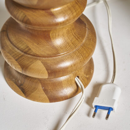 Pair of large turned wooden lamp bases. Oak legs, E27 socket with pull switch. Total height: 46 cm Feet: H. 40 cm D. 14 cm Cable length: 170 cm