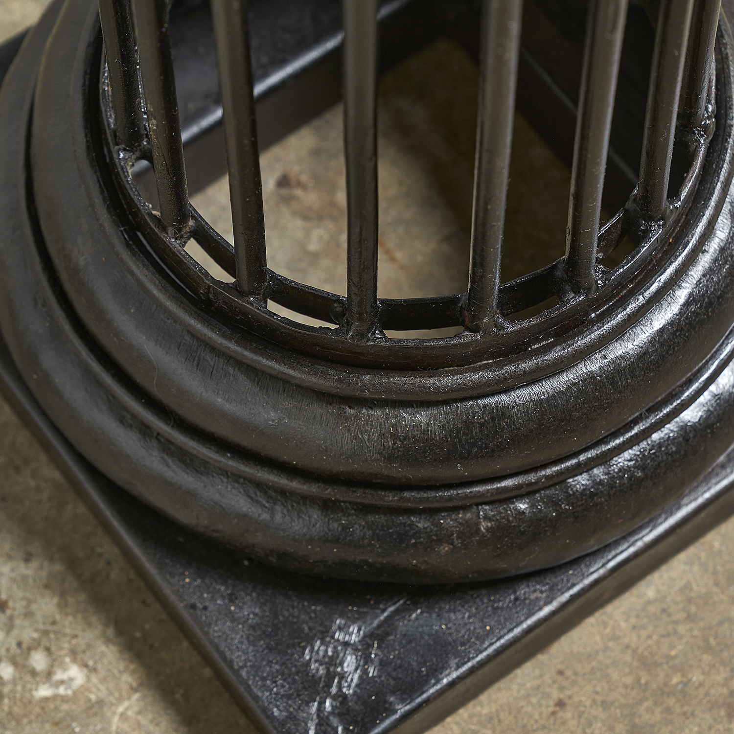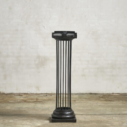 Colonne ornementale à chapiteau ionique, piédestal en fer forgé, finition satinée.