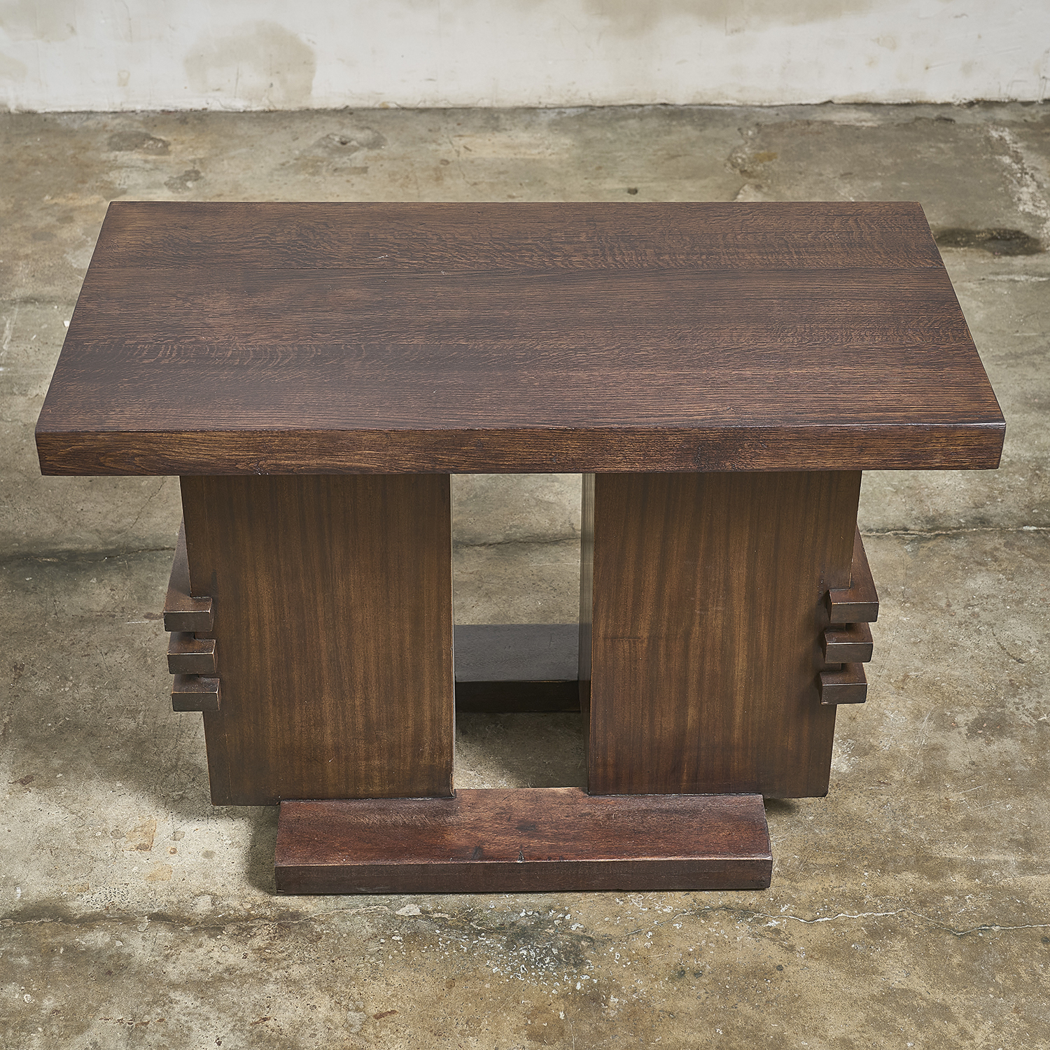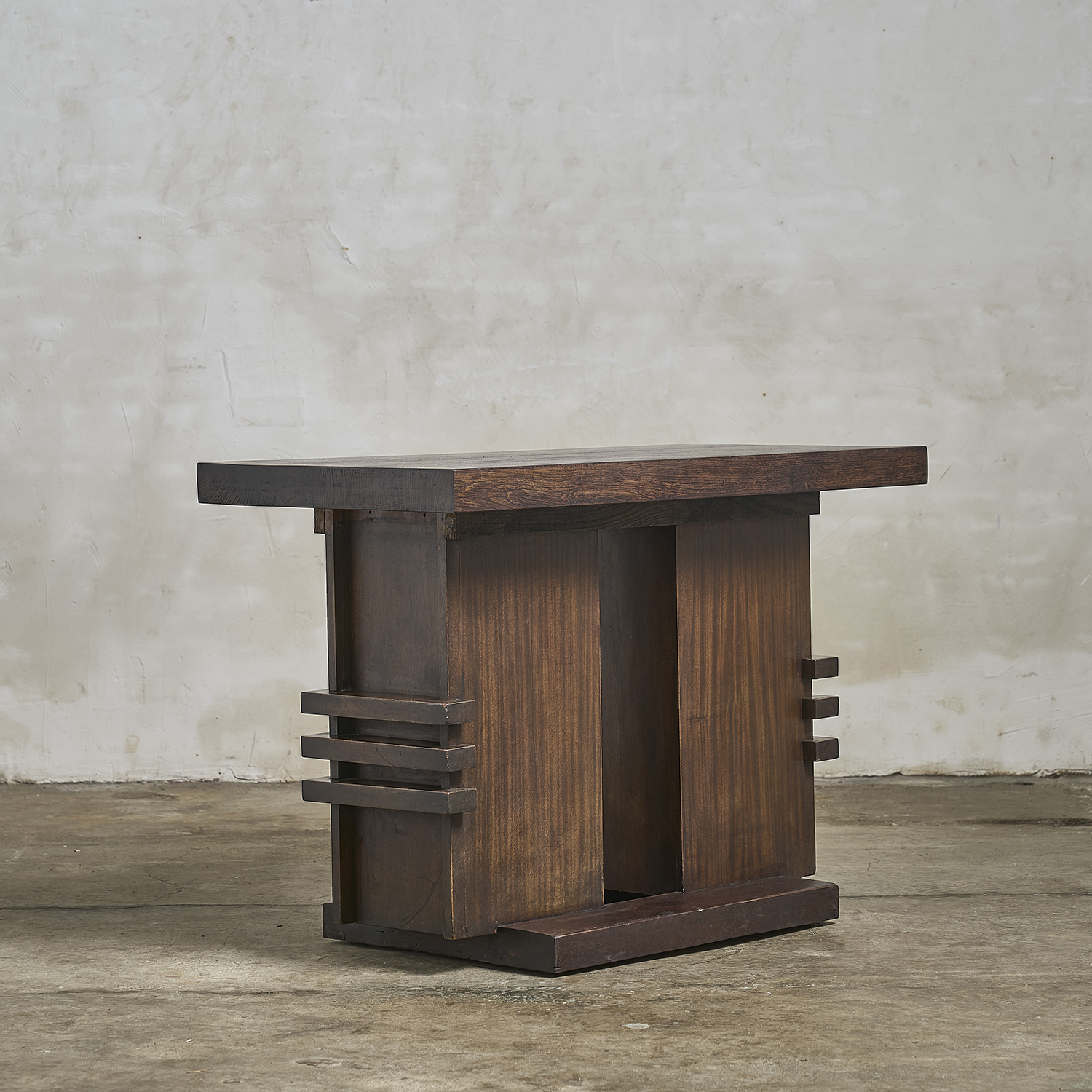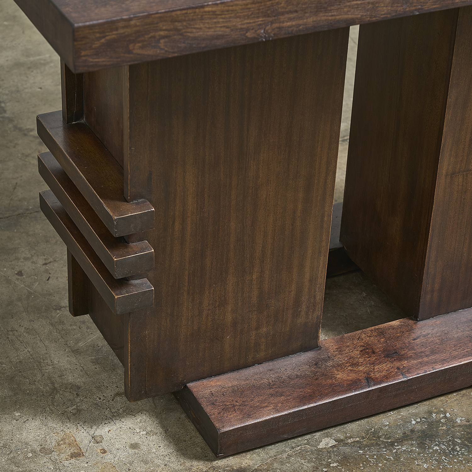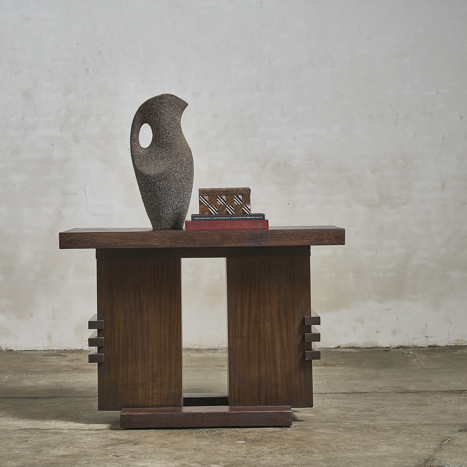 Console de milieu à deux imposants montants latéraux aux bords architecturés.