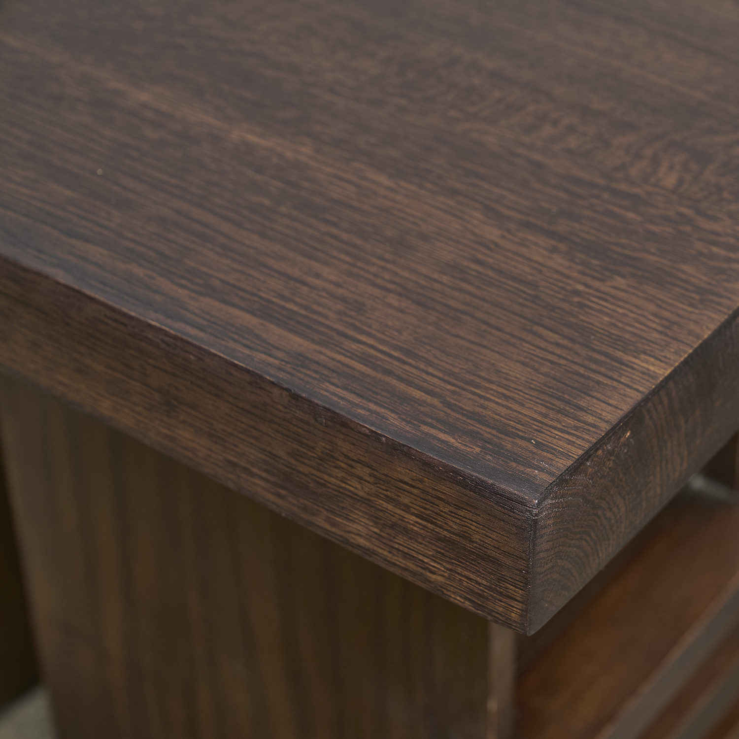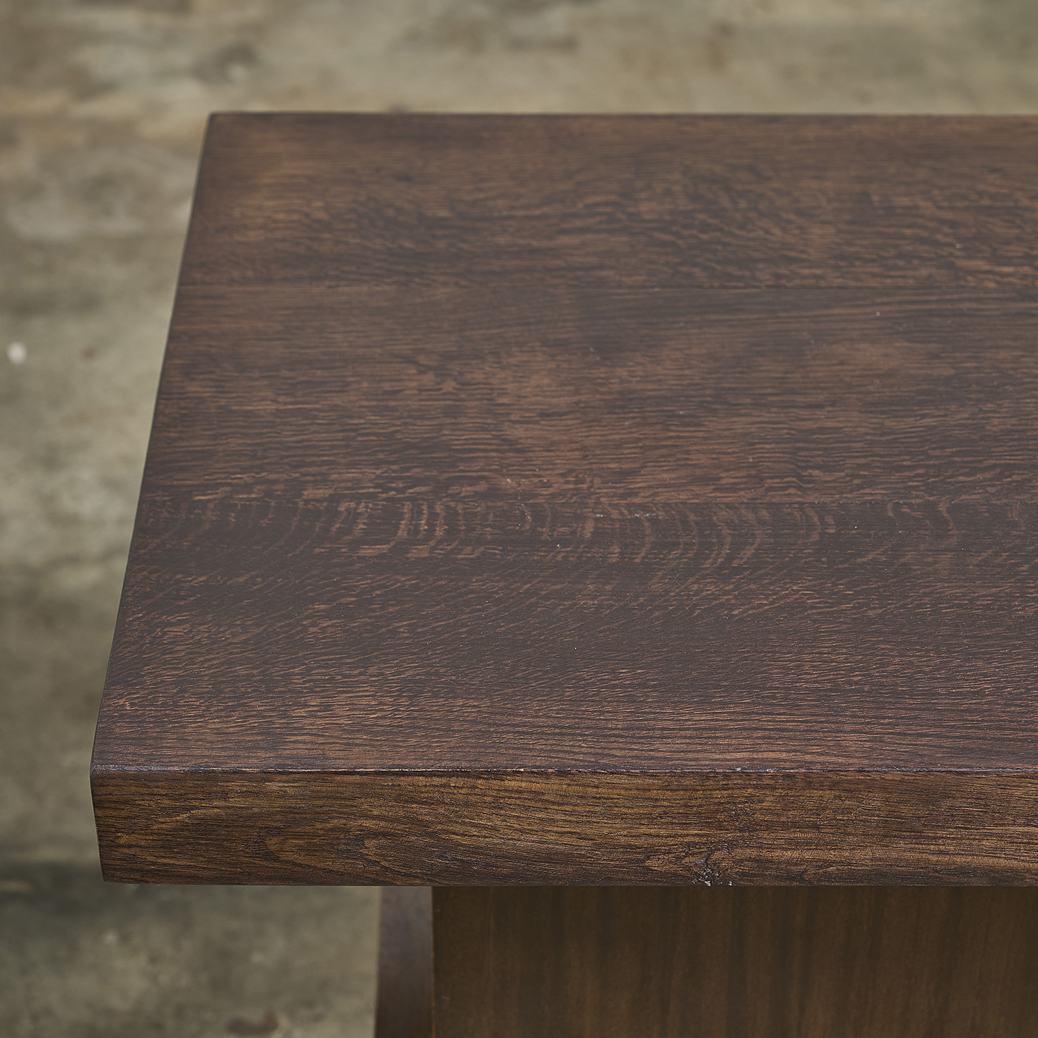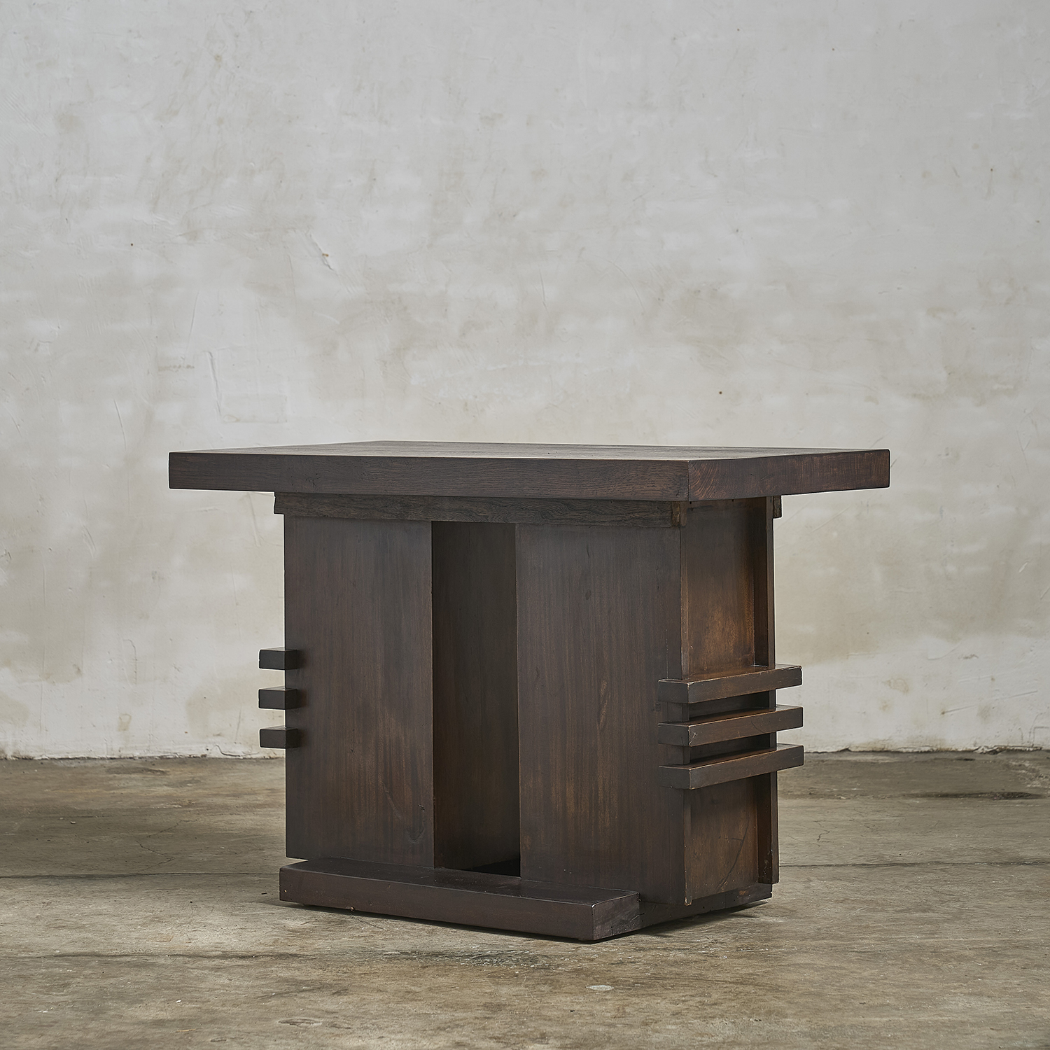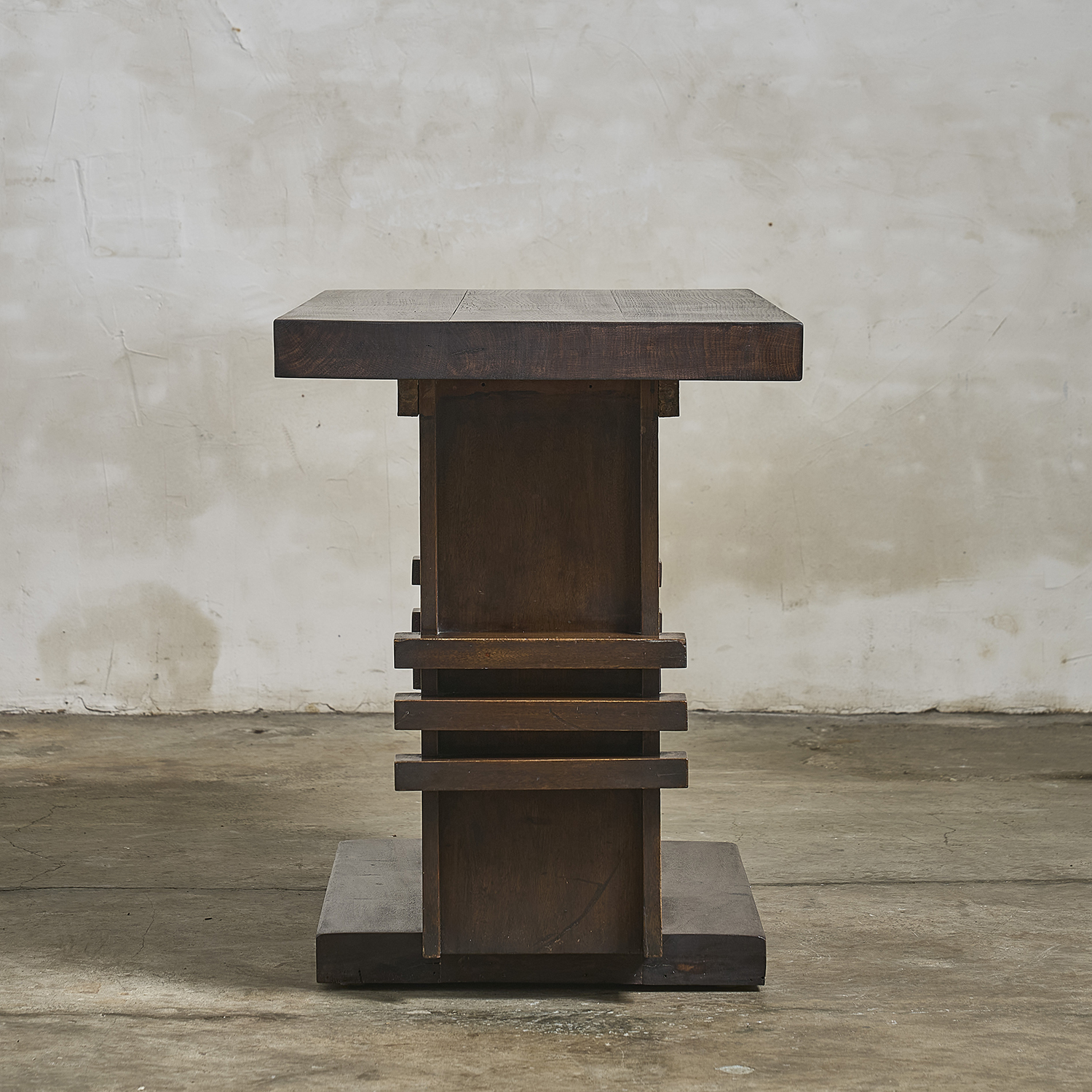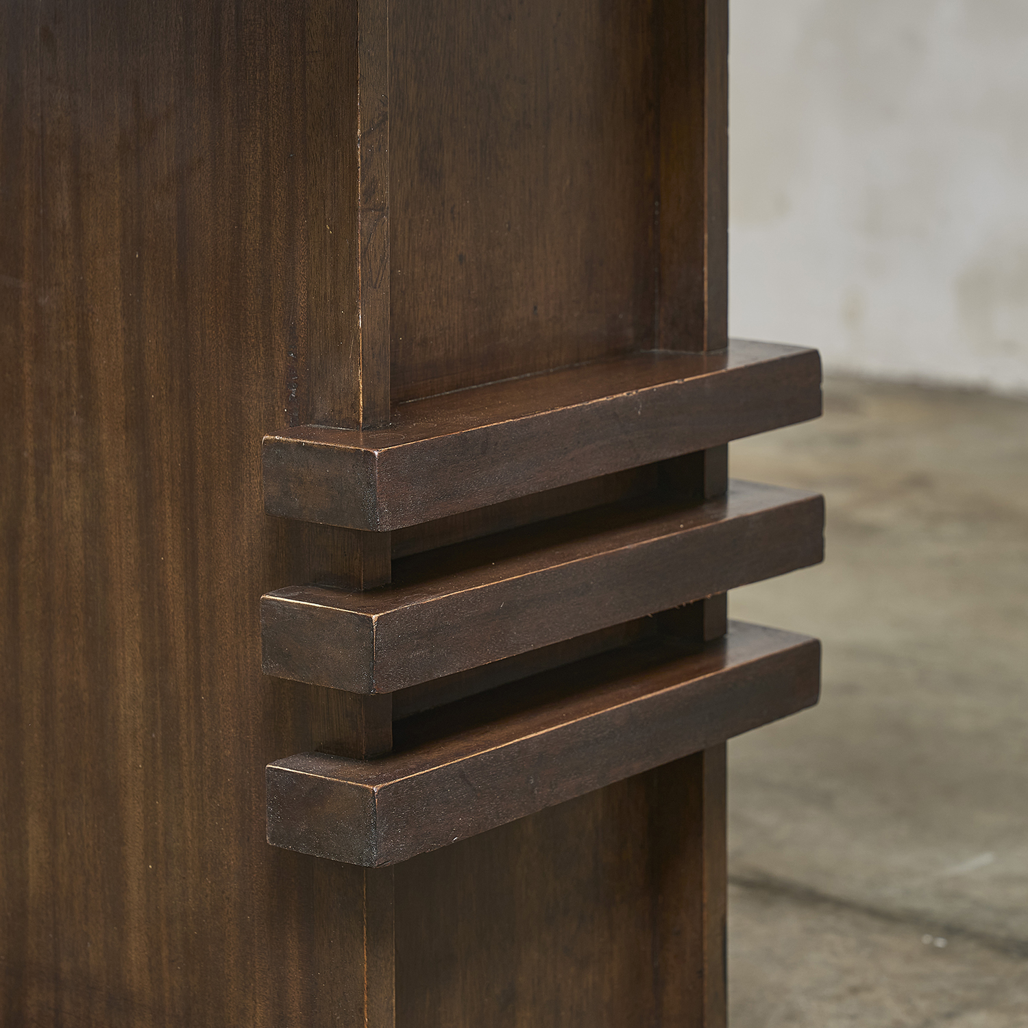Console de milieu à deux imposants montants latéraux aux bords architecturés.