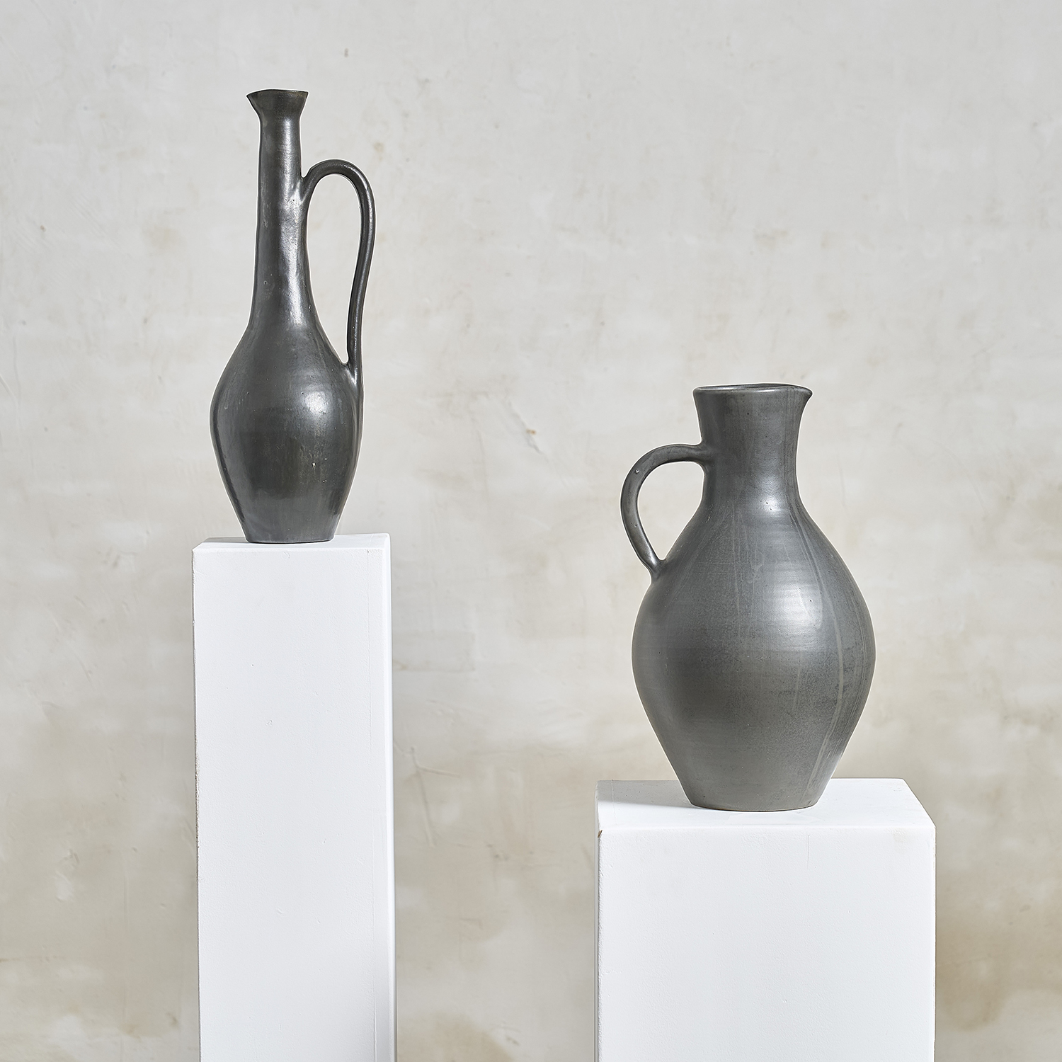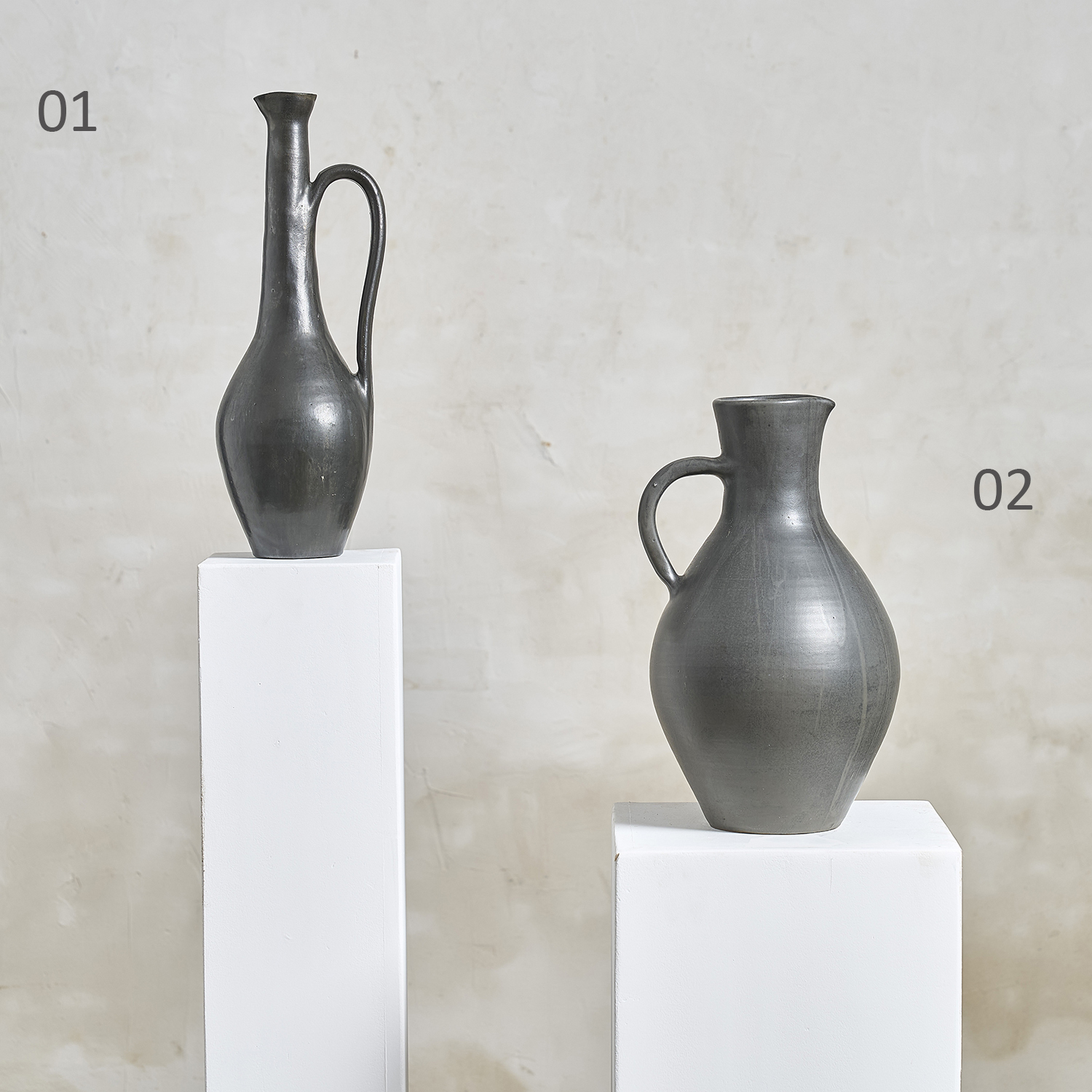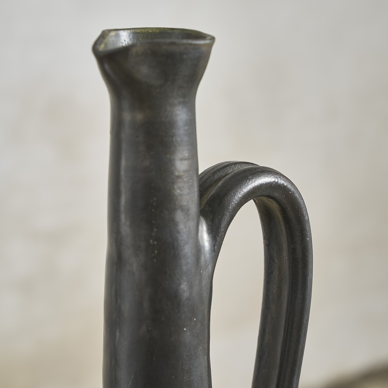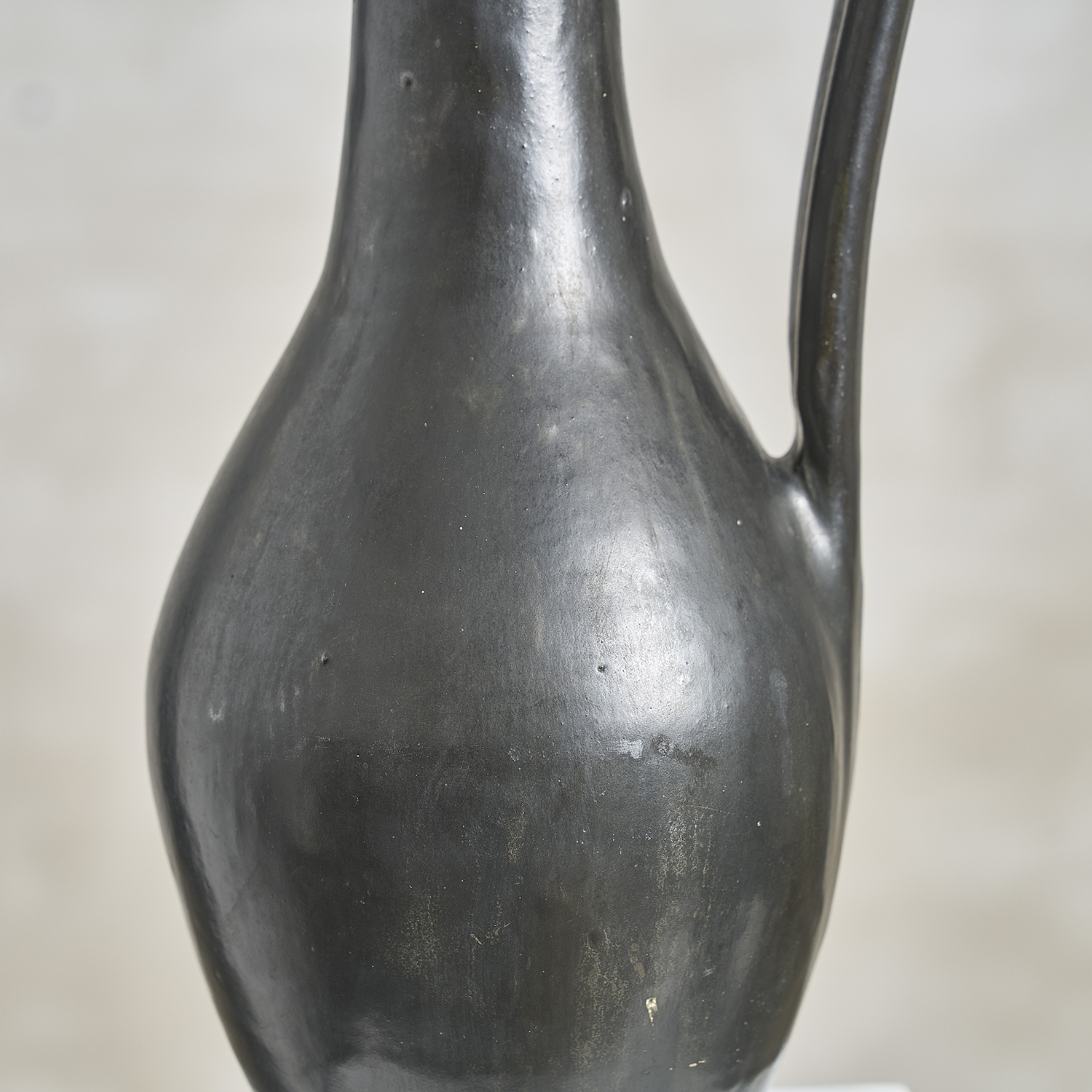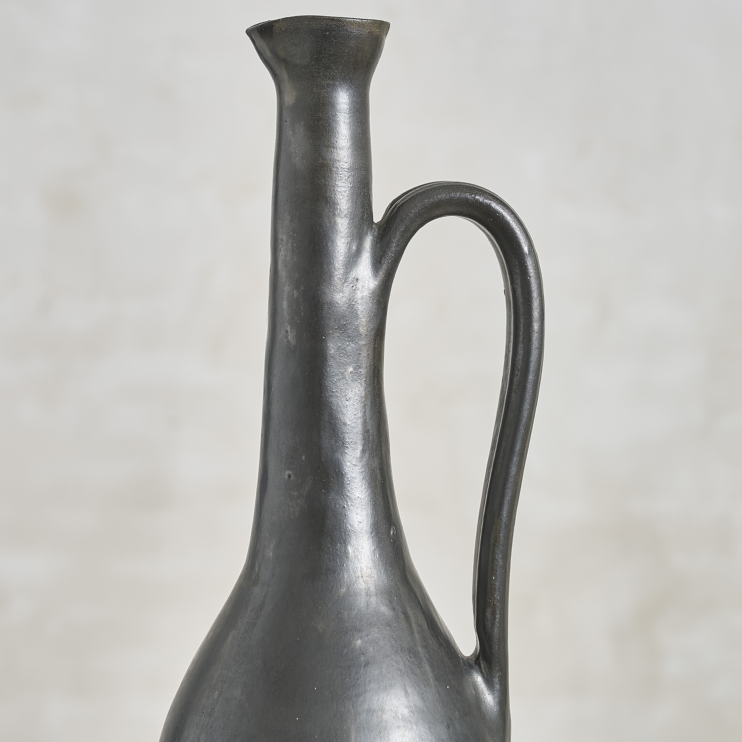 2. Roger Jacques – Grand pichet à panse en terre cuite, émail noir mat.