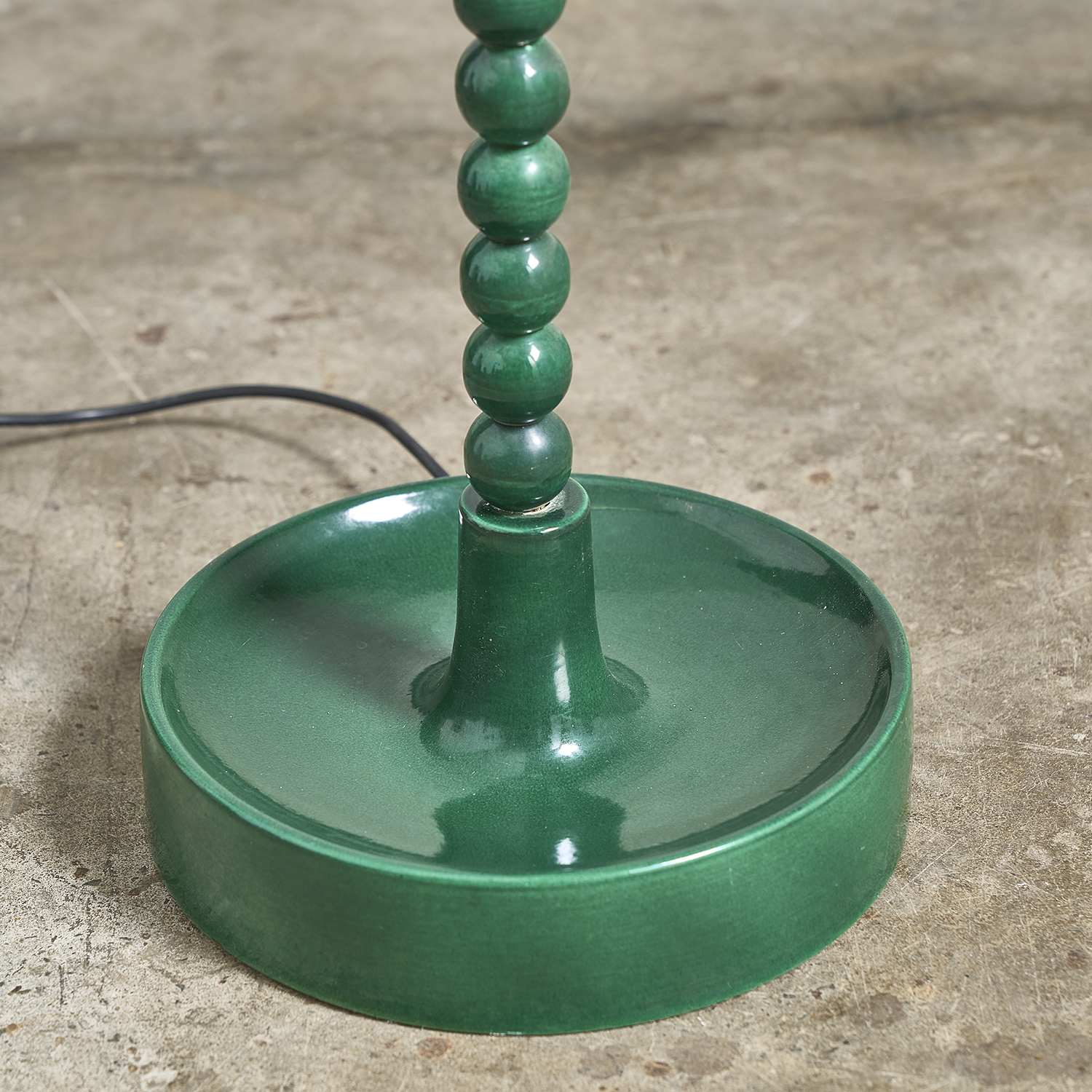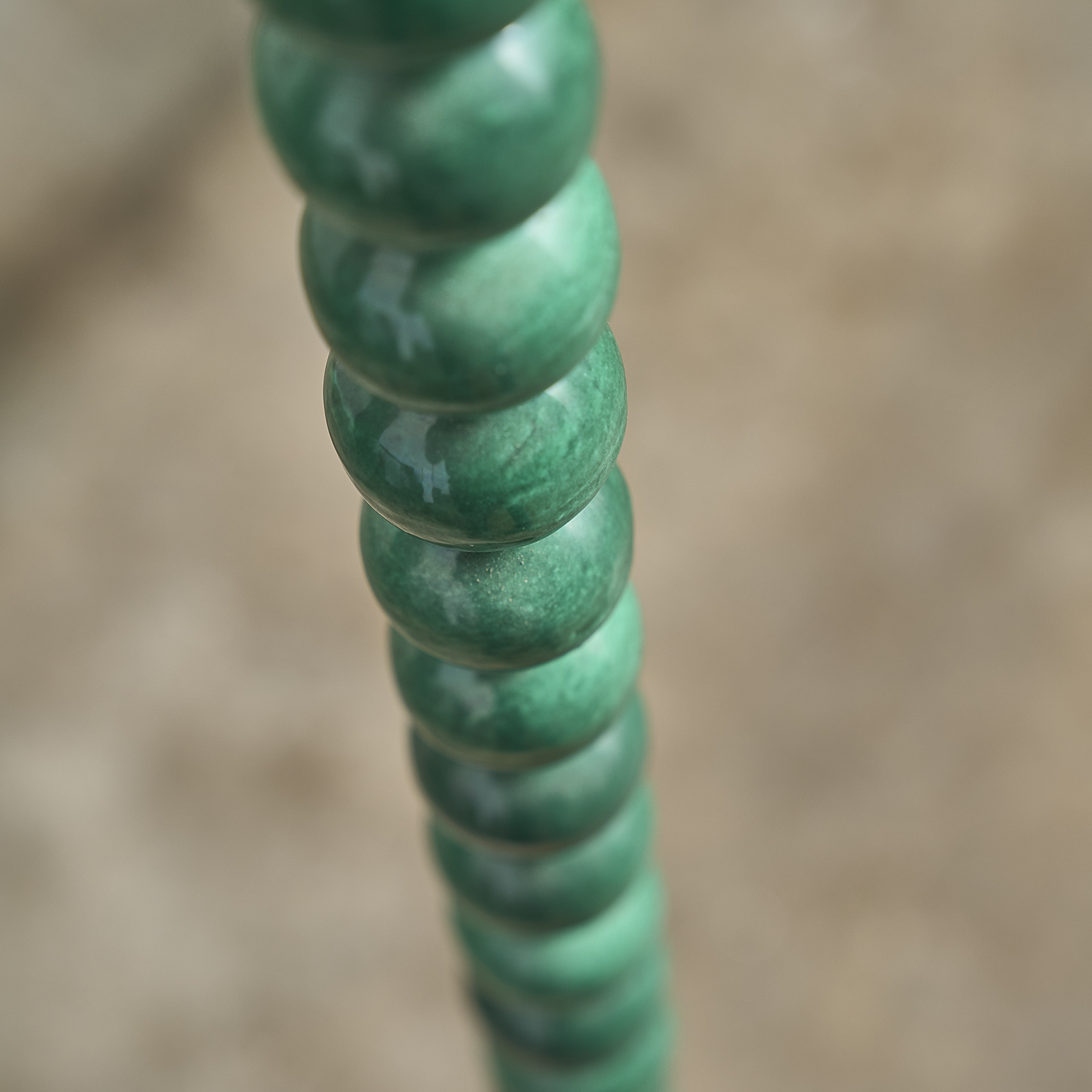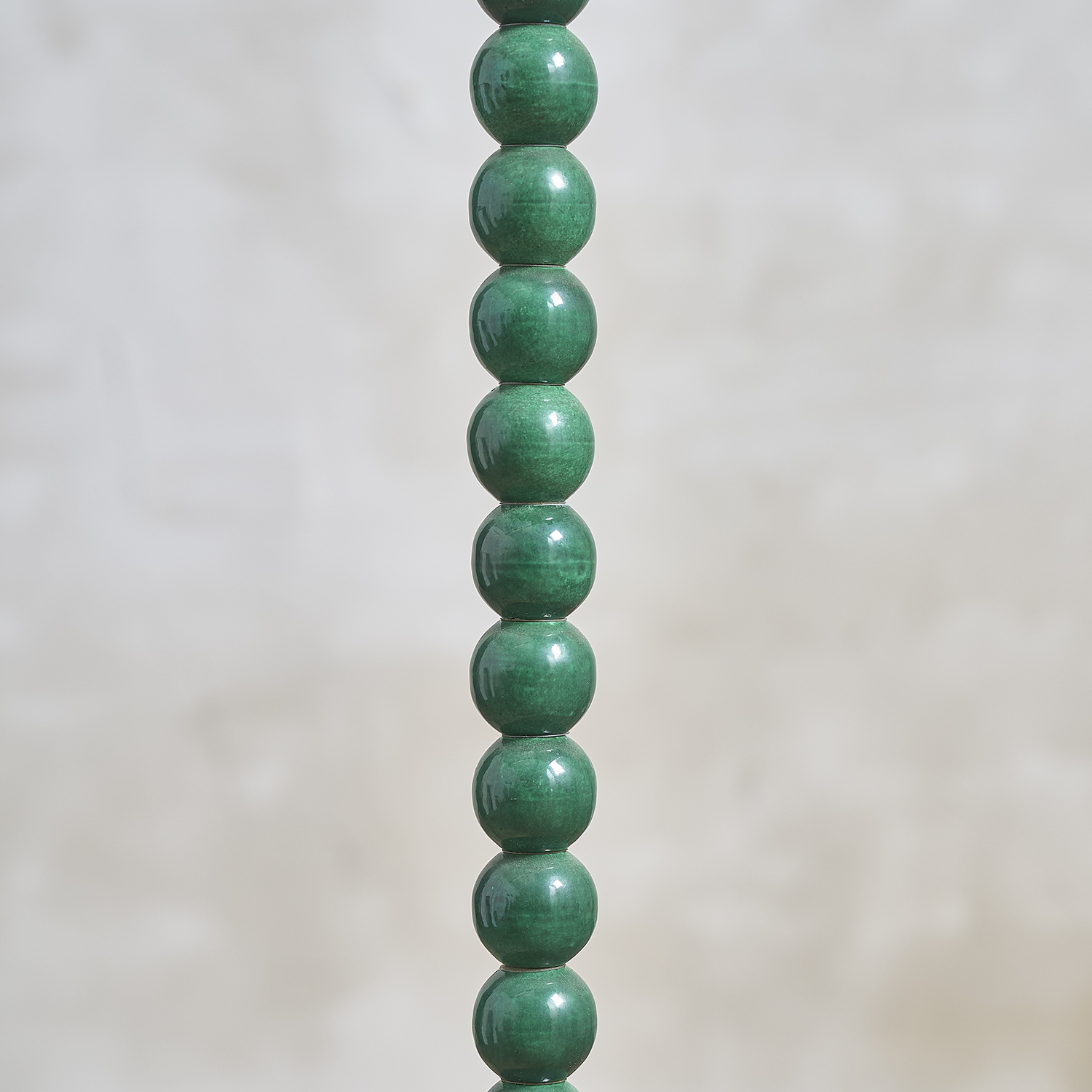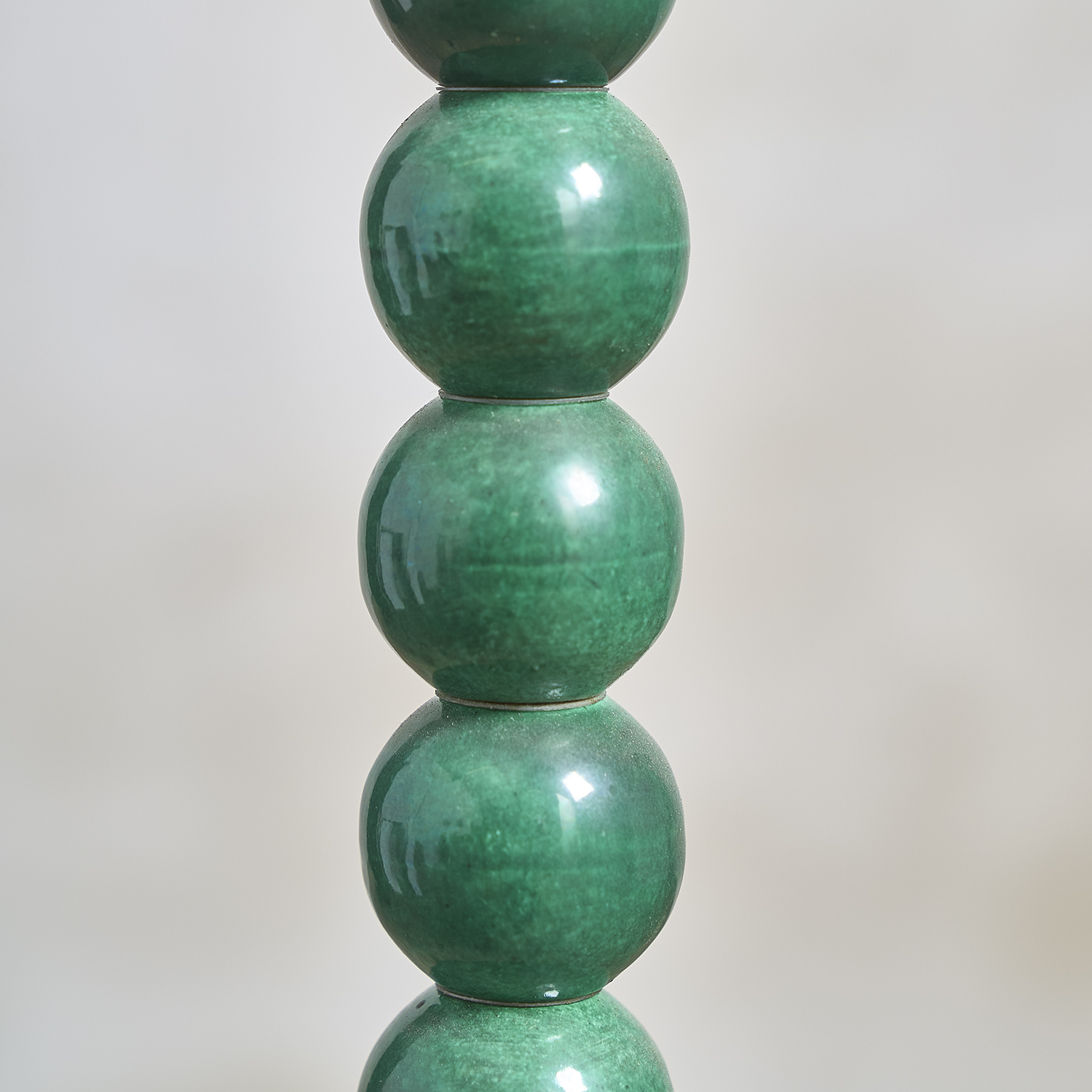 Étonnante liseuse en perles de céramique à glaçure verte montées sur une base circulaire.