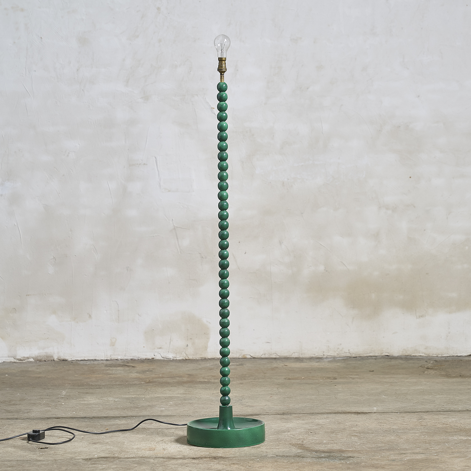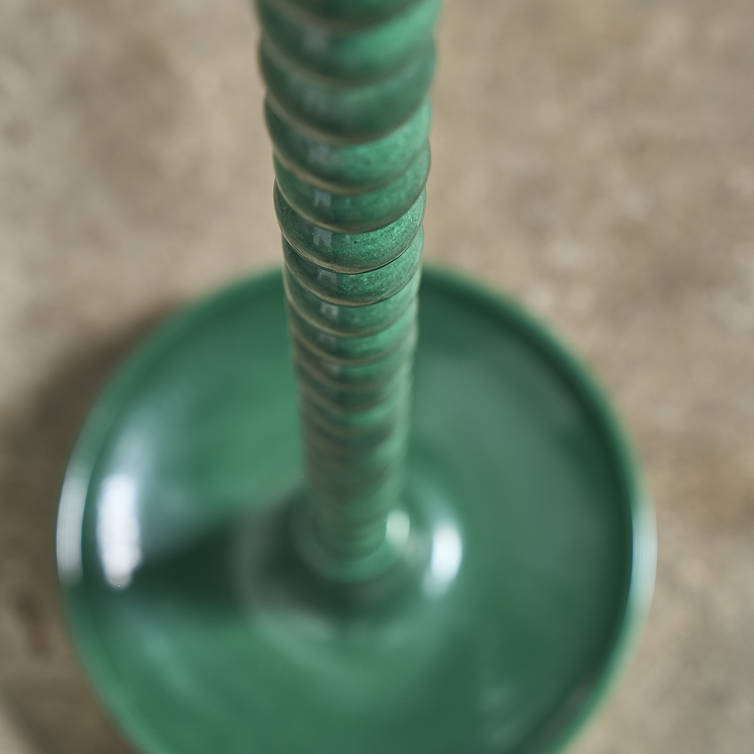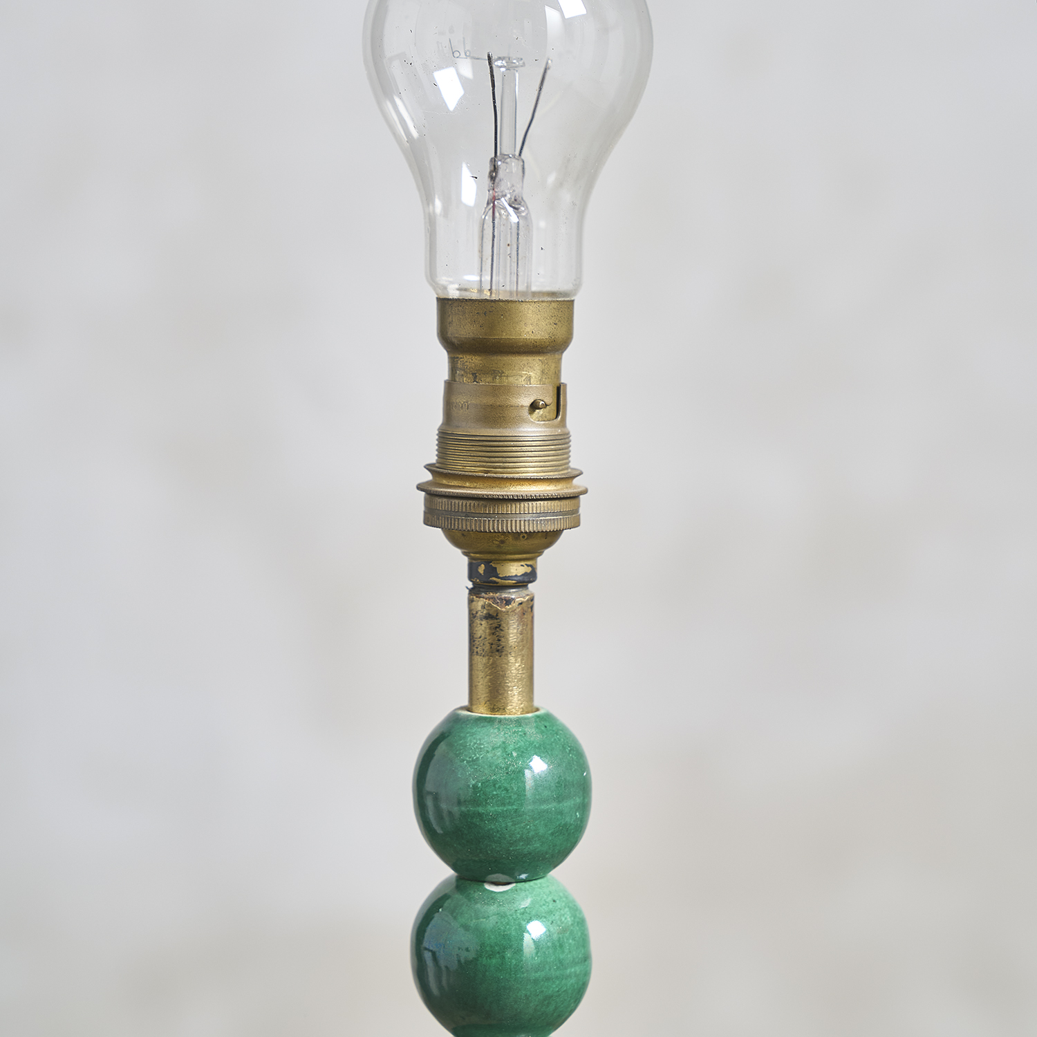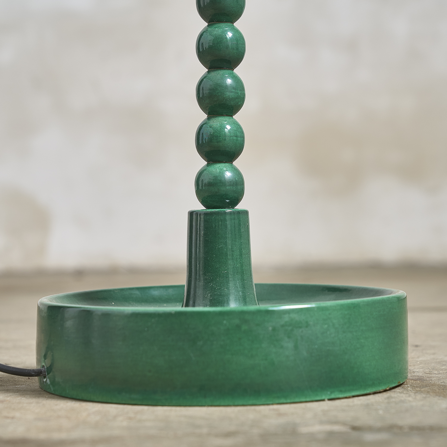 Étonnante liseuse en perles de céramique à glaçure verte montées sur une base circulaire.