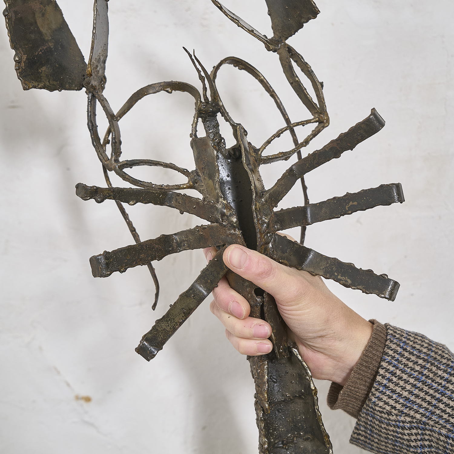 Etonnante sculpture brutaliste en fer forgé et soudé représentant un homard, vers 1970.