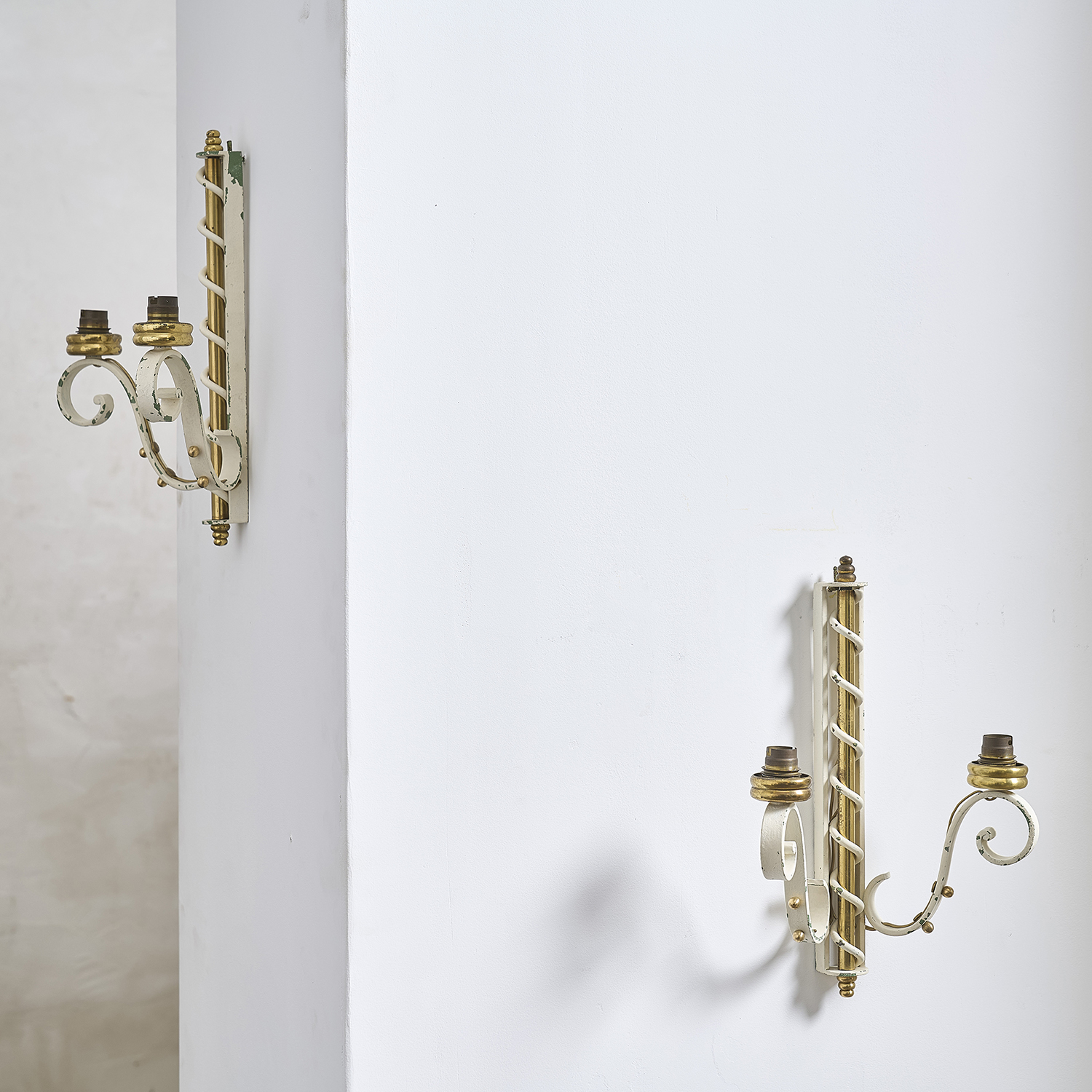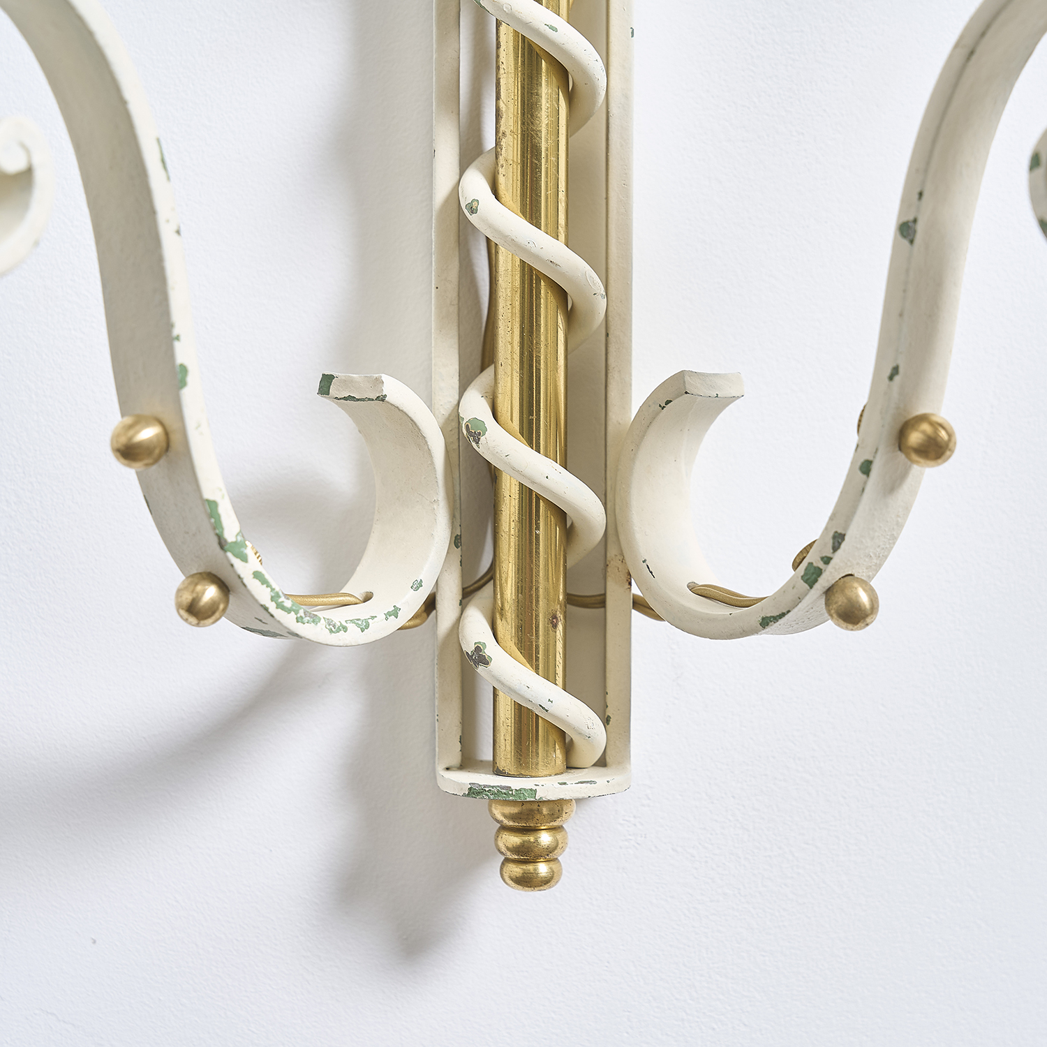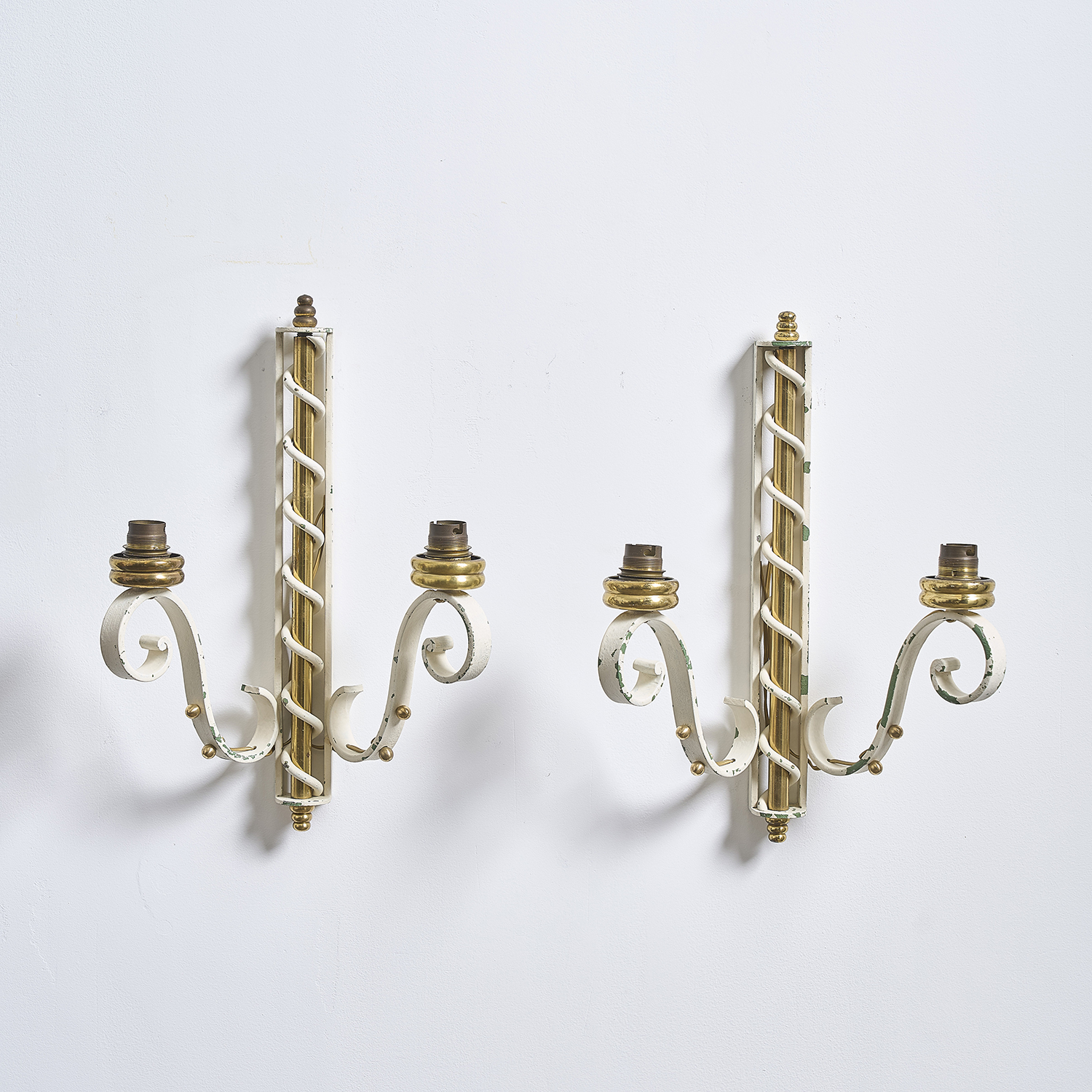 Dans le goût de Réné Drouet, paire d’appliques en métal peint aux décors en laiton, France vers 1940.