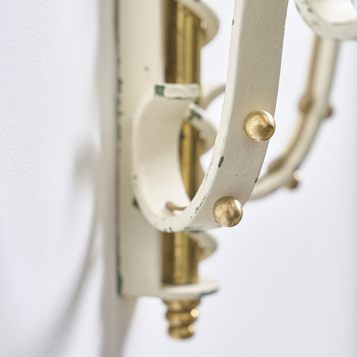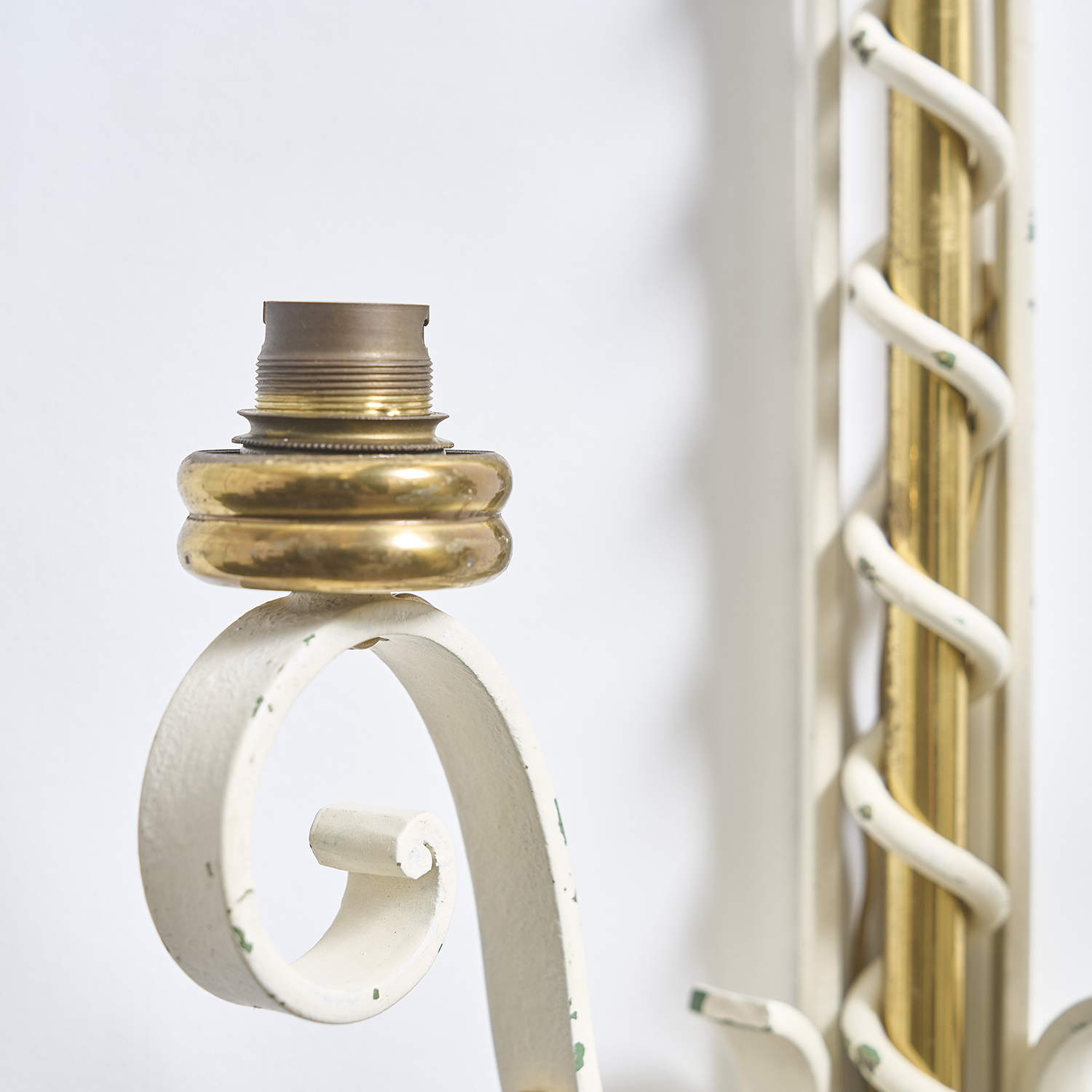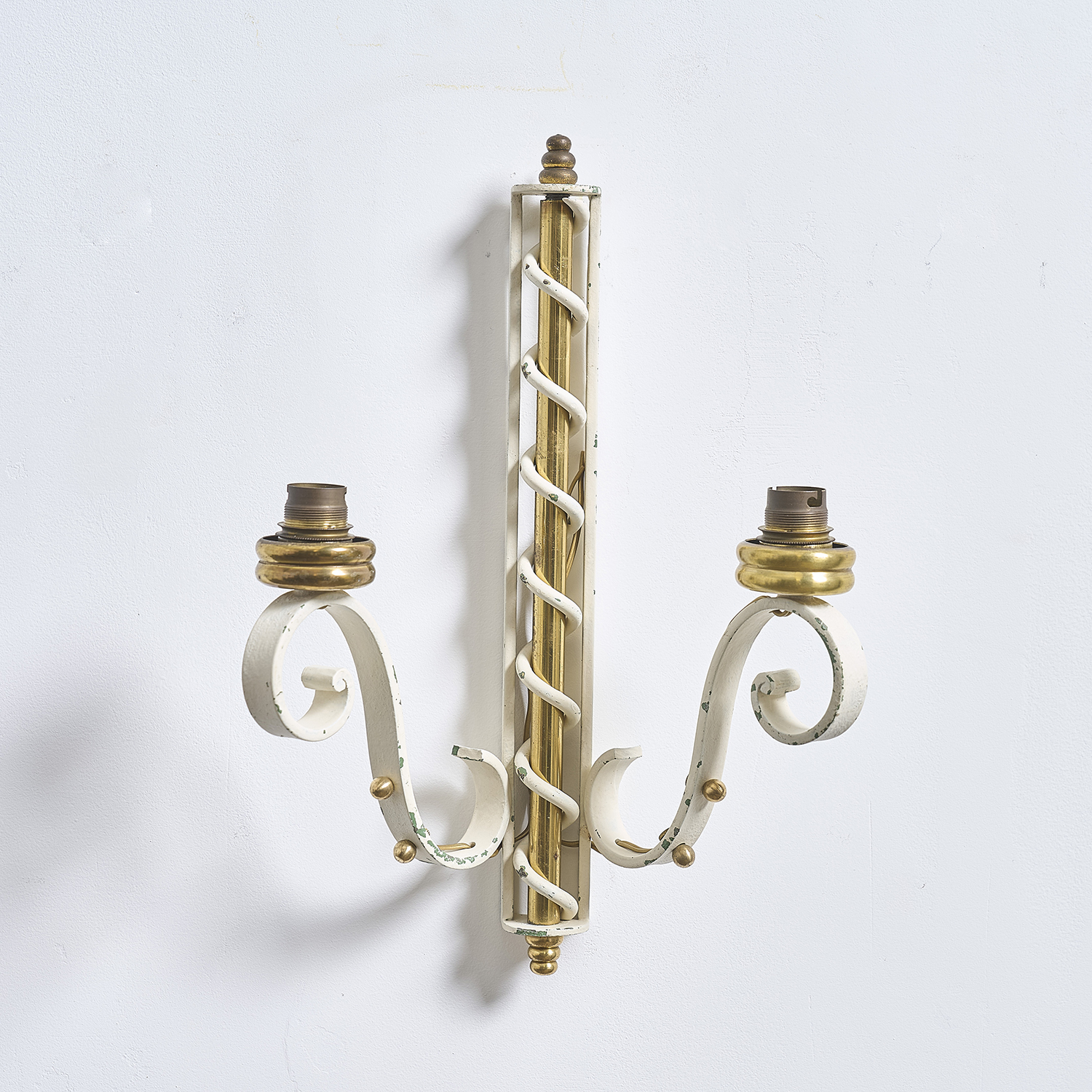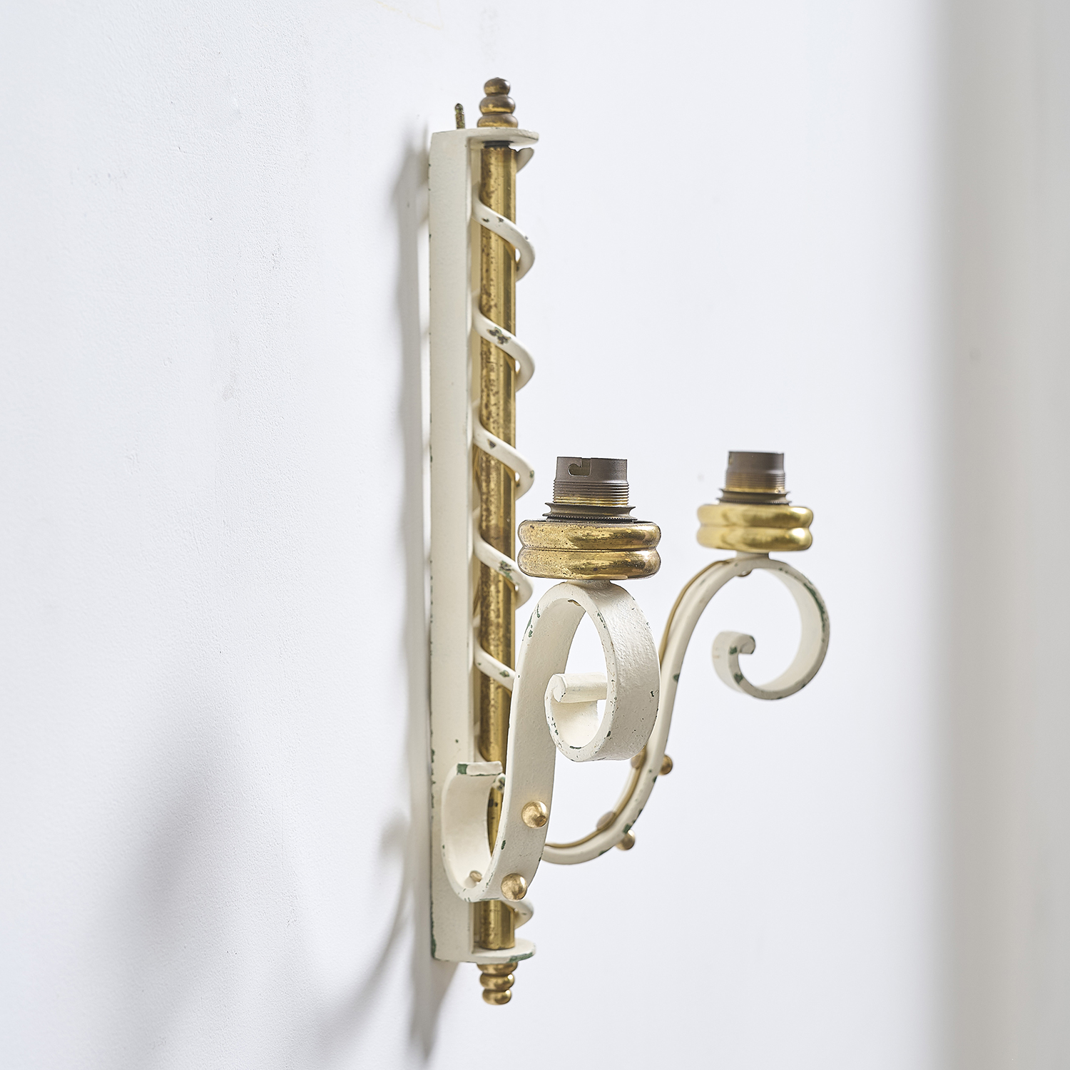 Dans le goût de Réné Drouet, paire d’appliques en métal peint aux décors en laiton, France vers 1940.