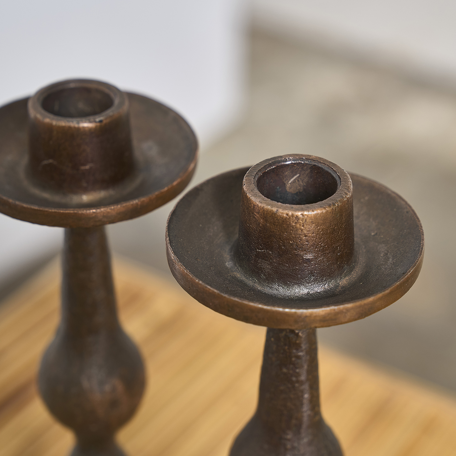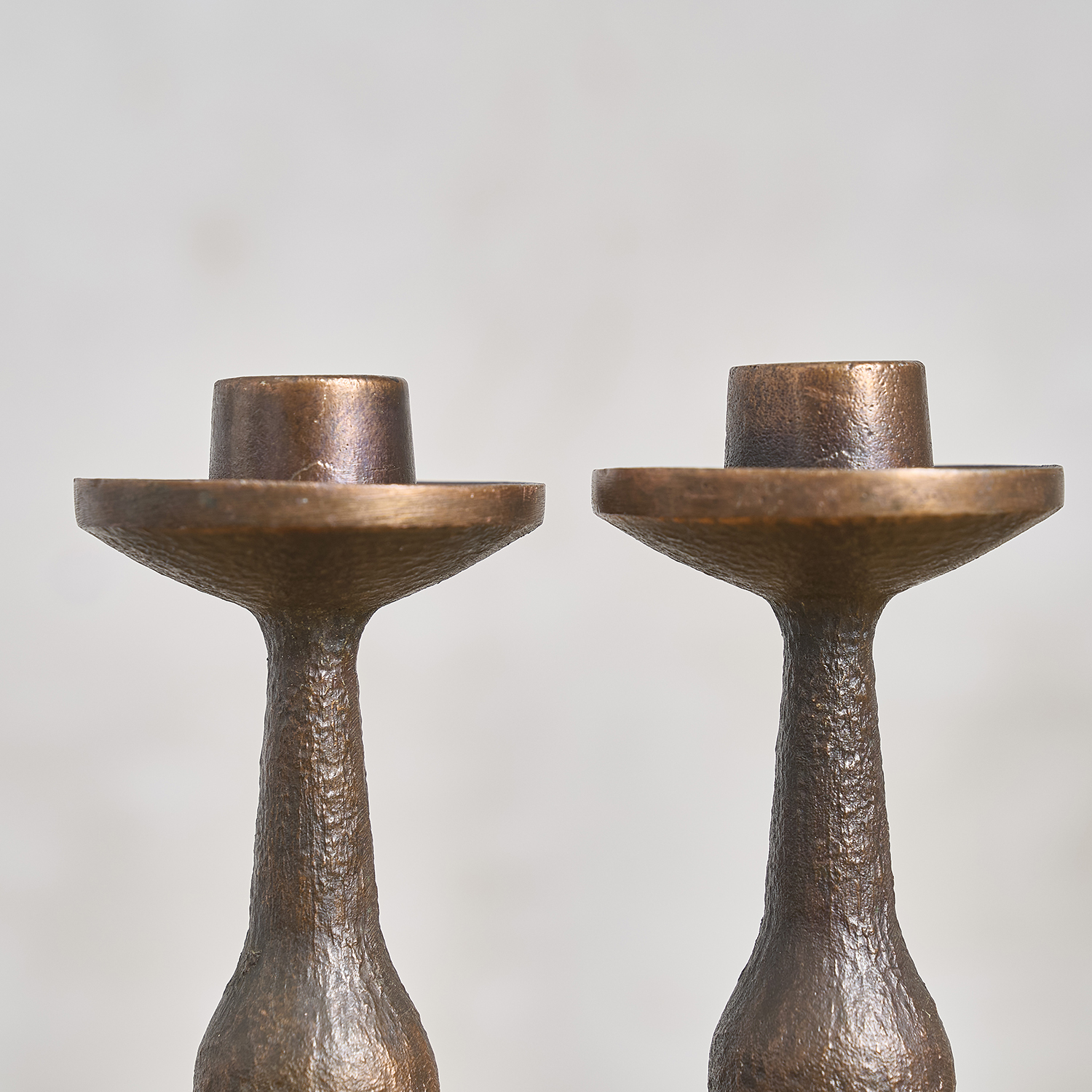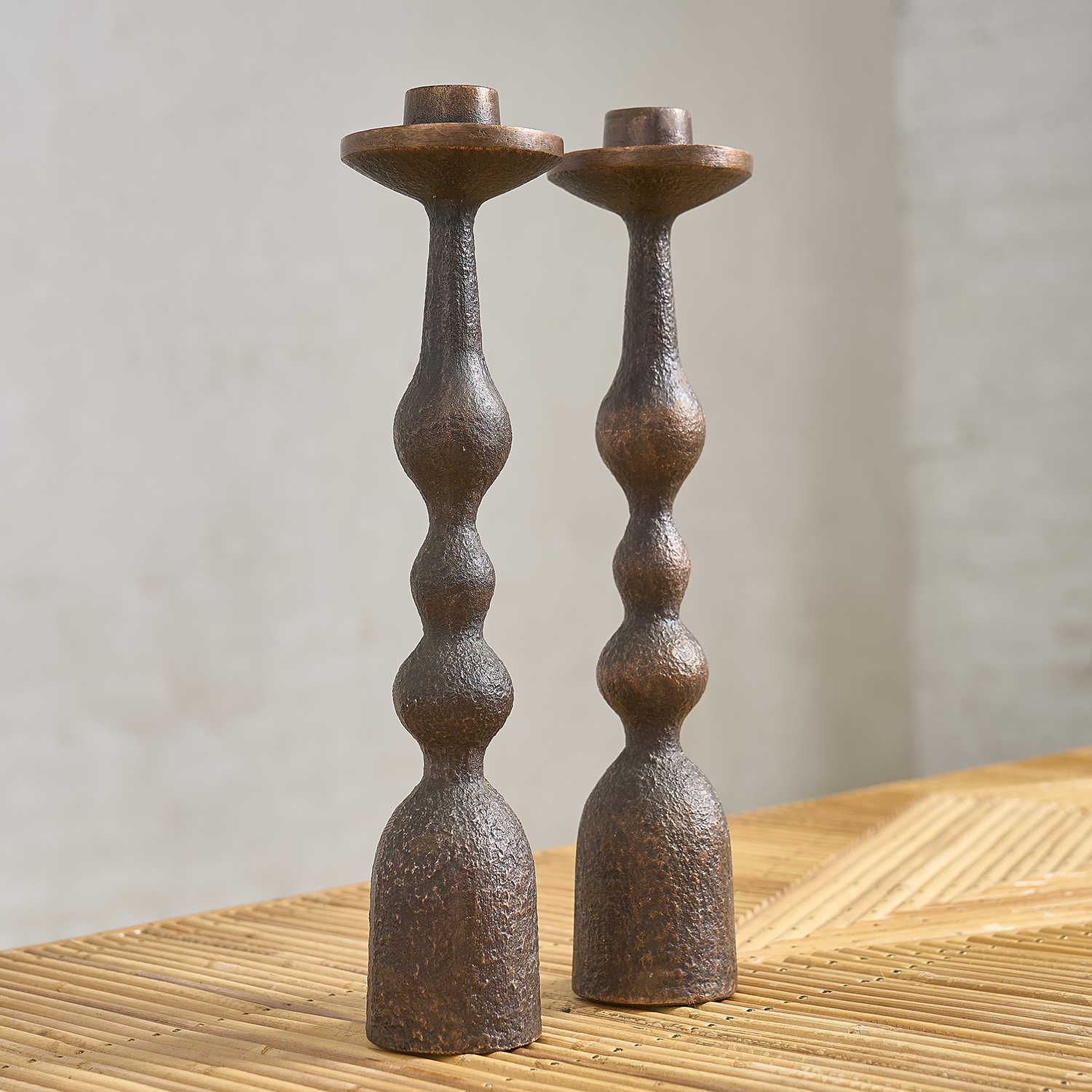 Paire de bougeoirs brutalistes en cuivre, vers 1970.