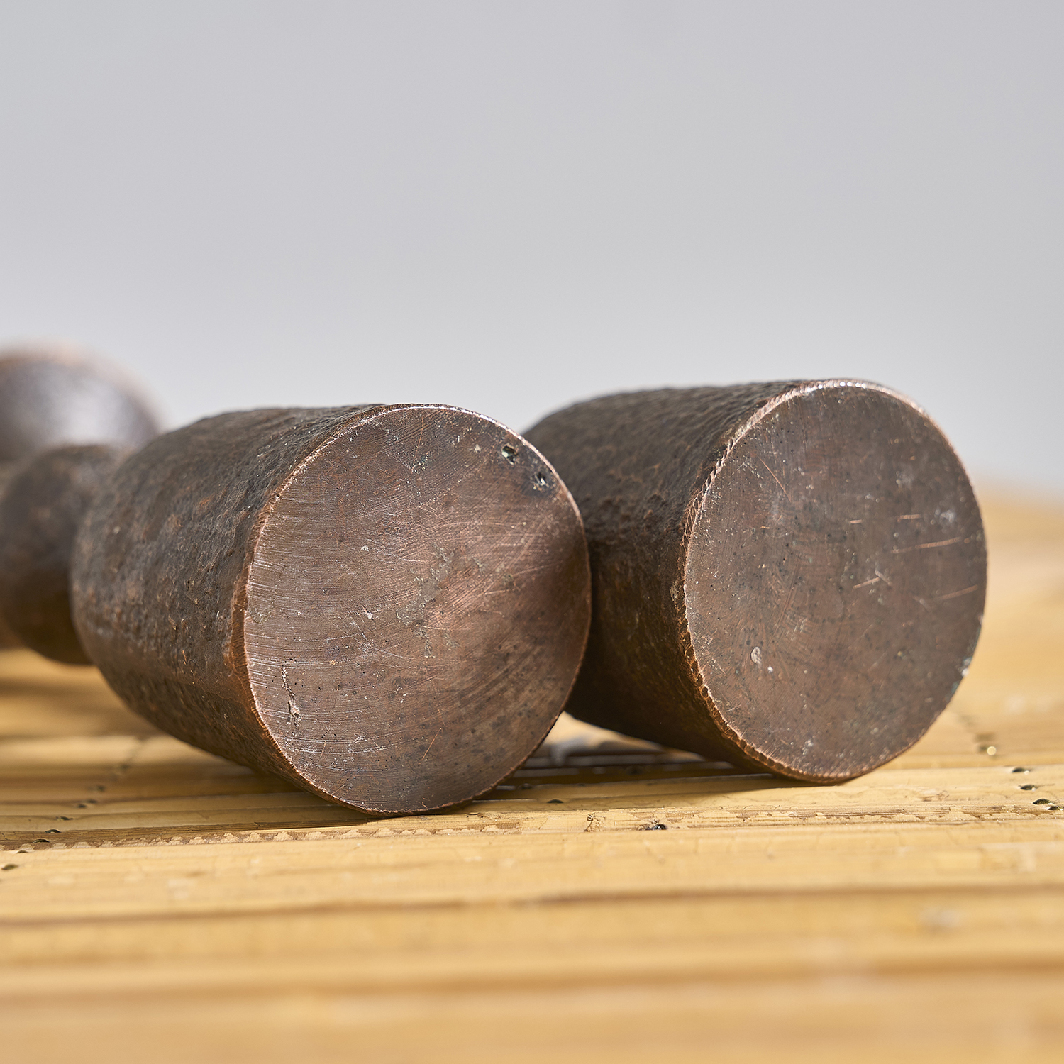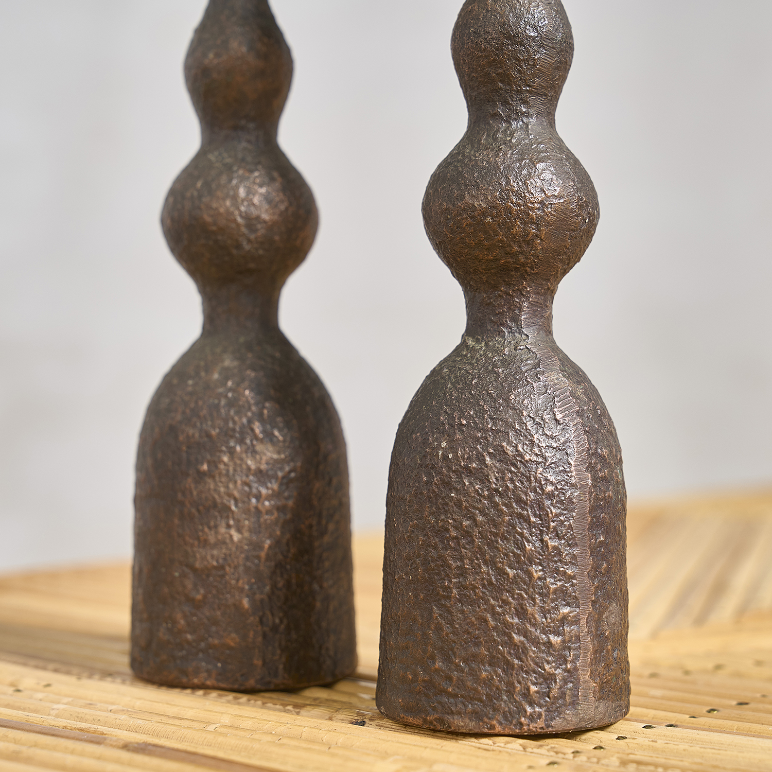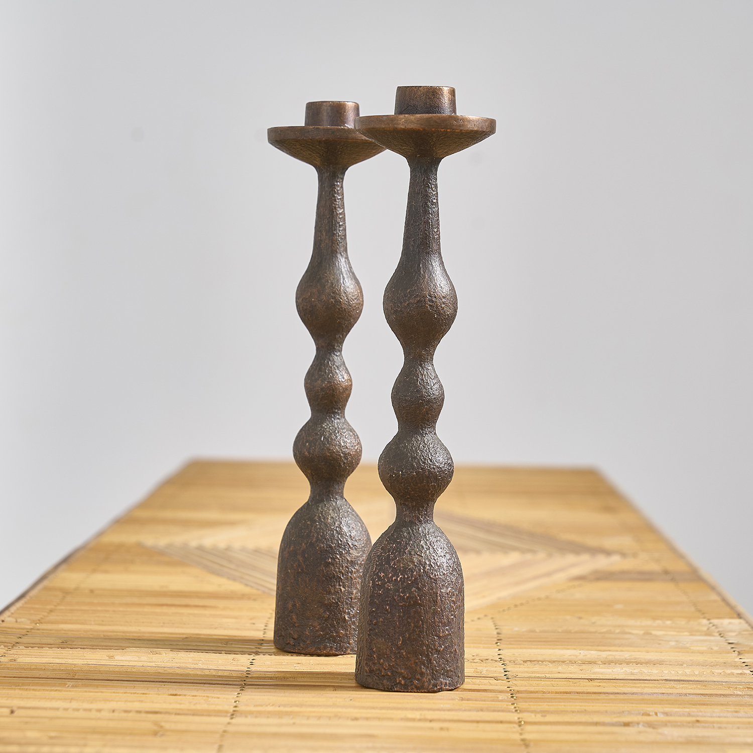 Paire de bougeoirs brutalistes en cuivre, vers 1970.