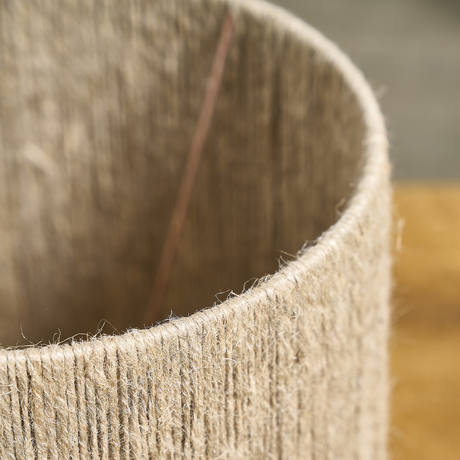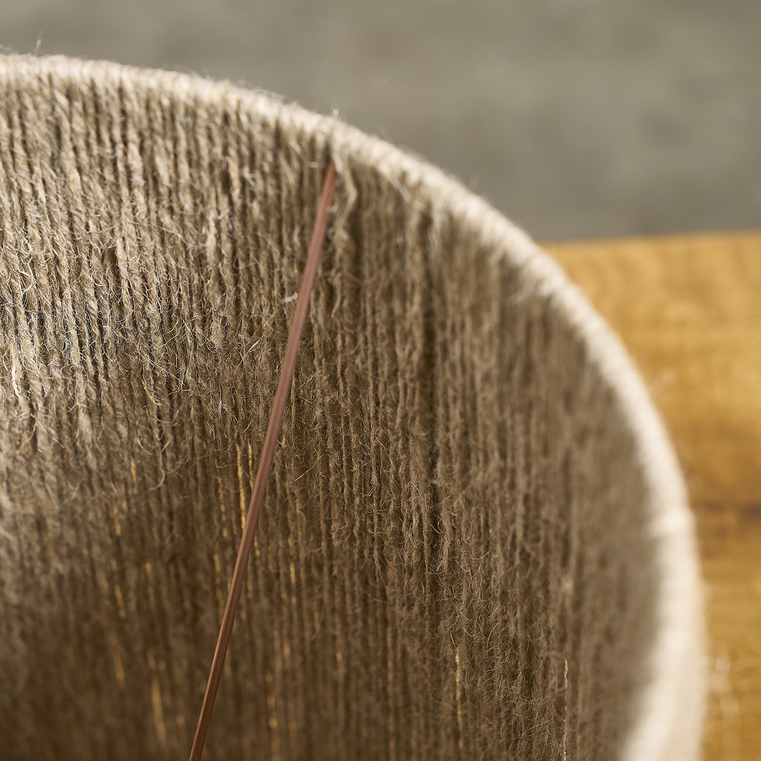Paire de grandes lampes à poser blanches en bois tourné et abat-jour artisanaux en corde.