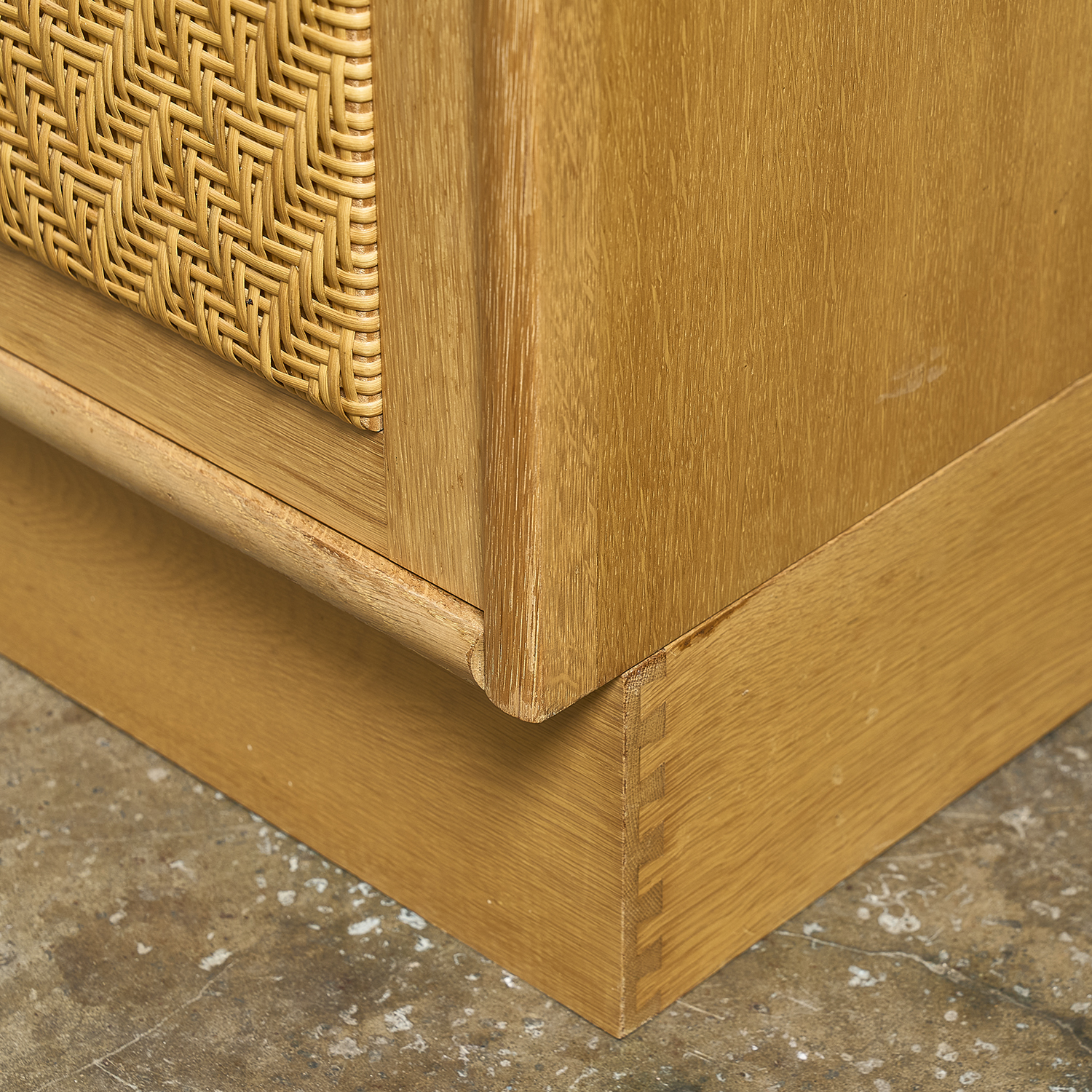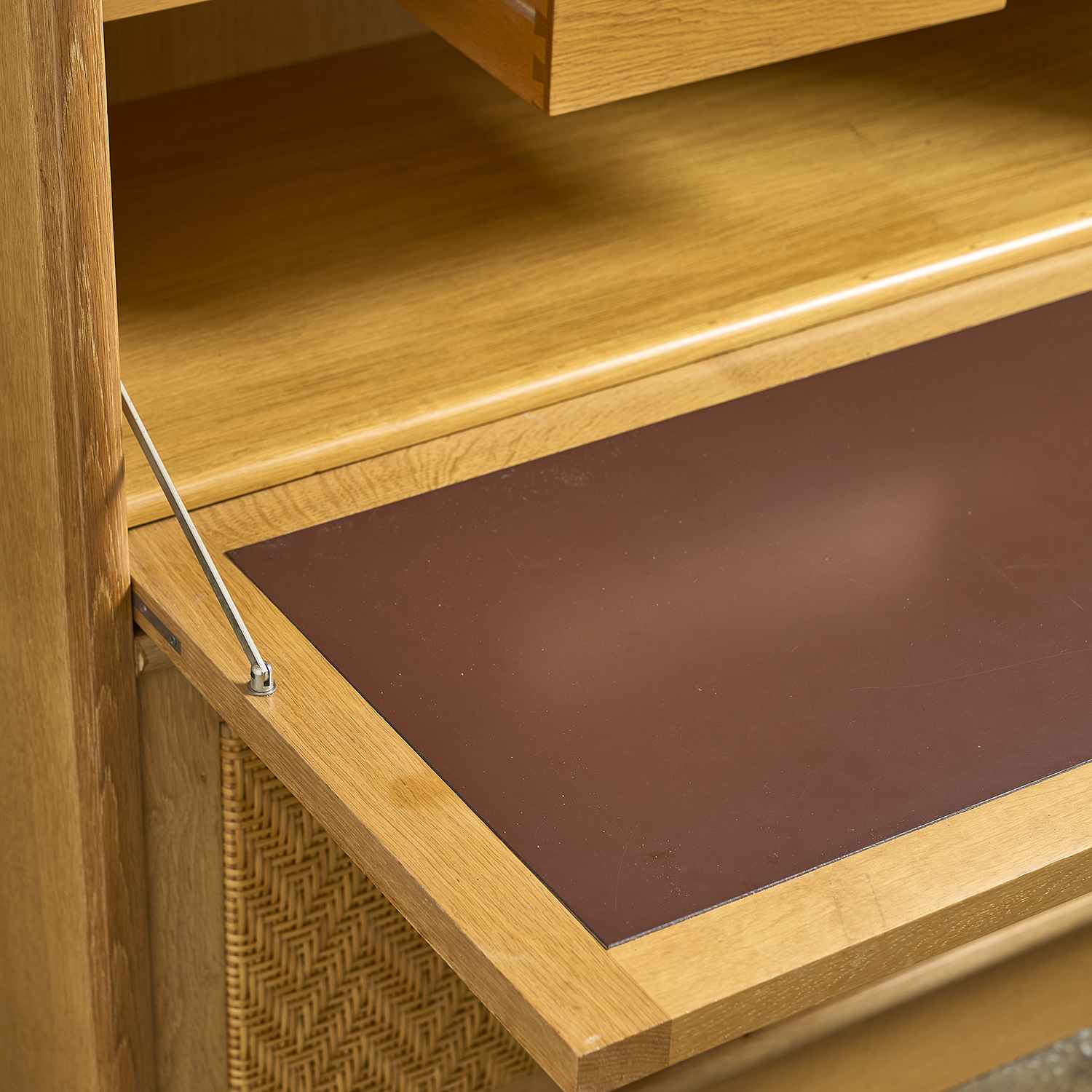 Secrétaire en chêne et rotin