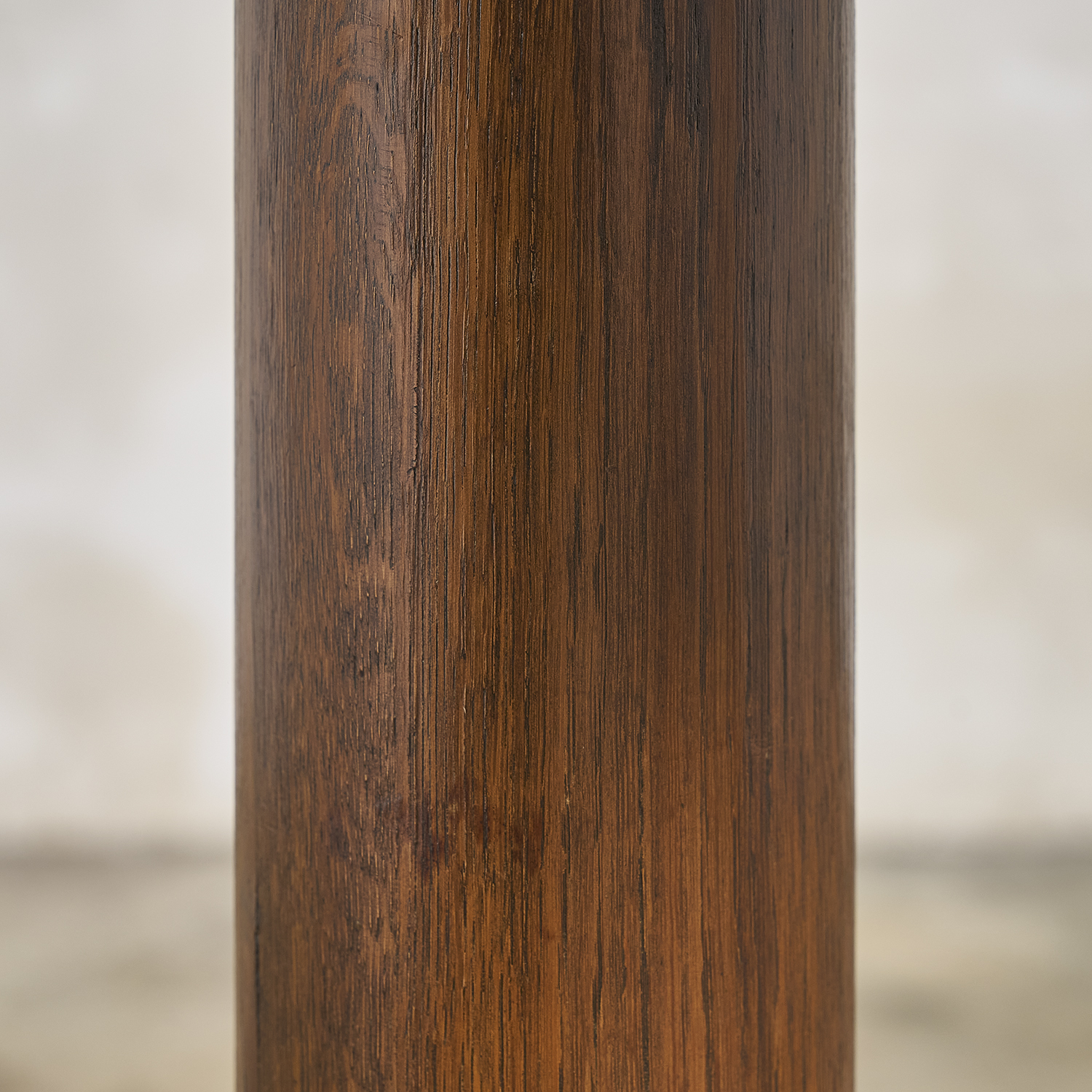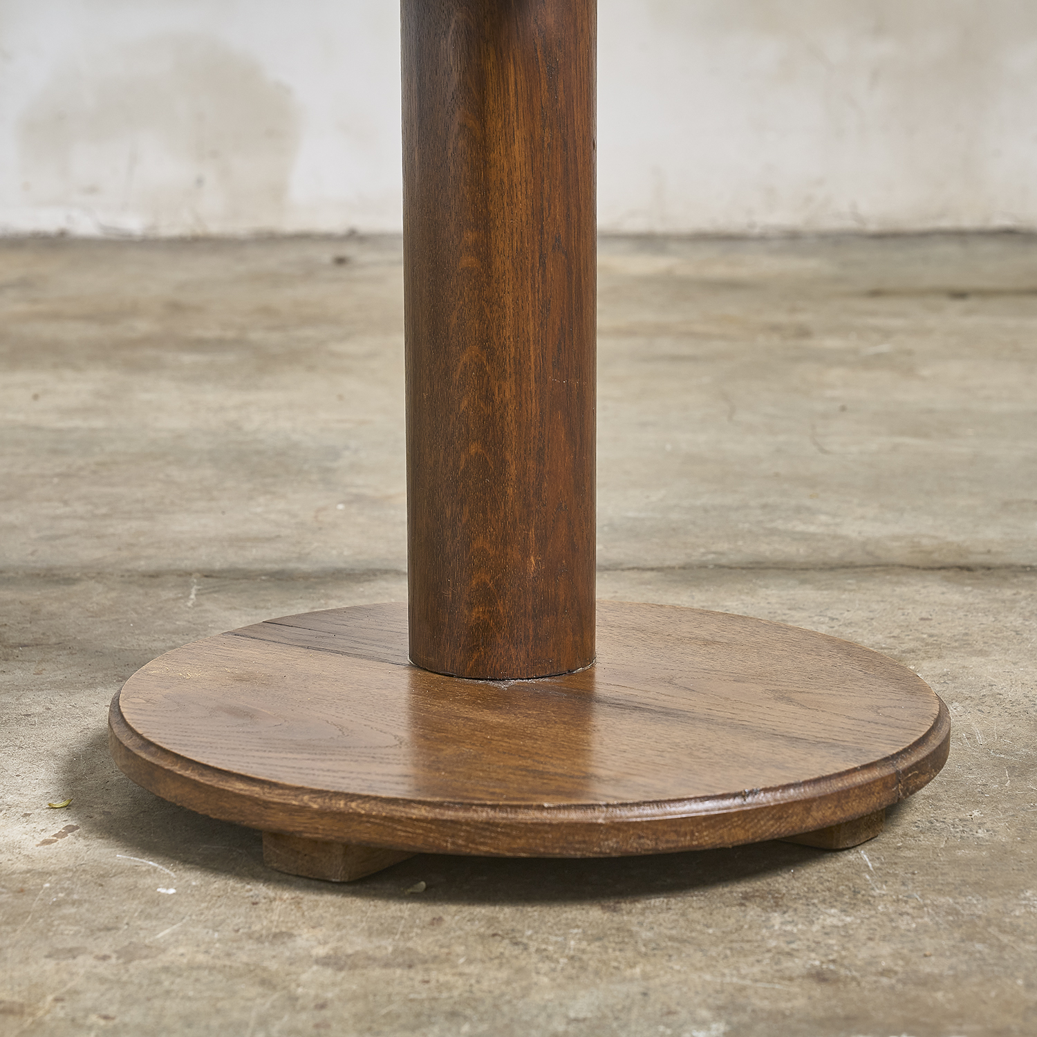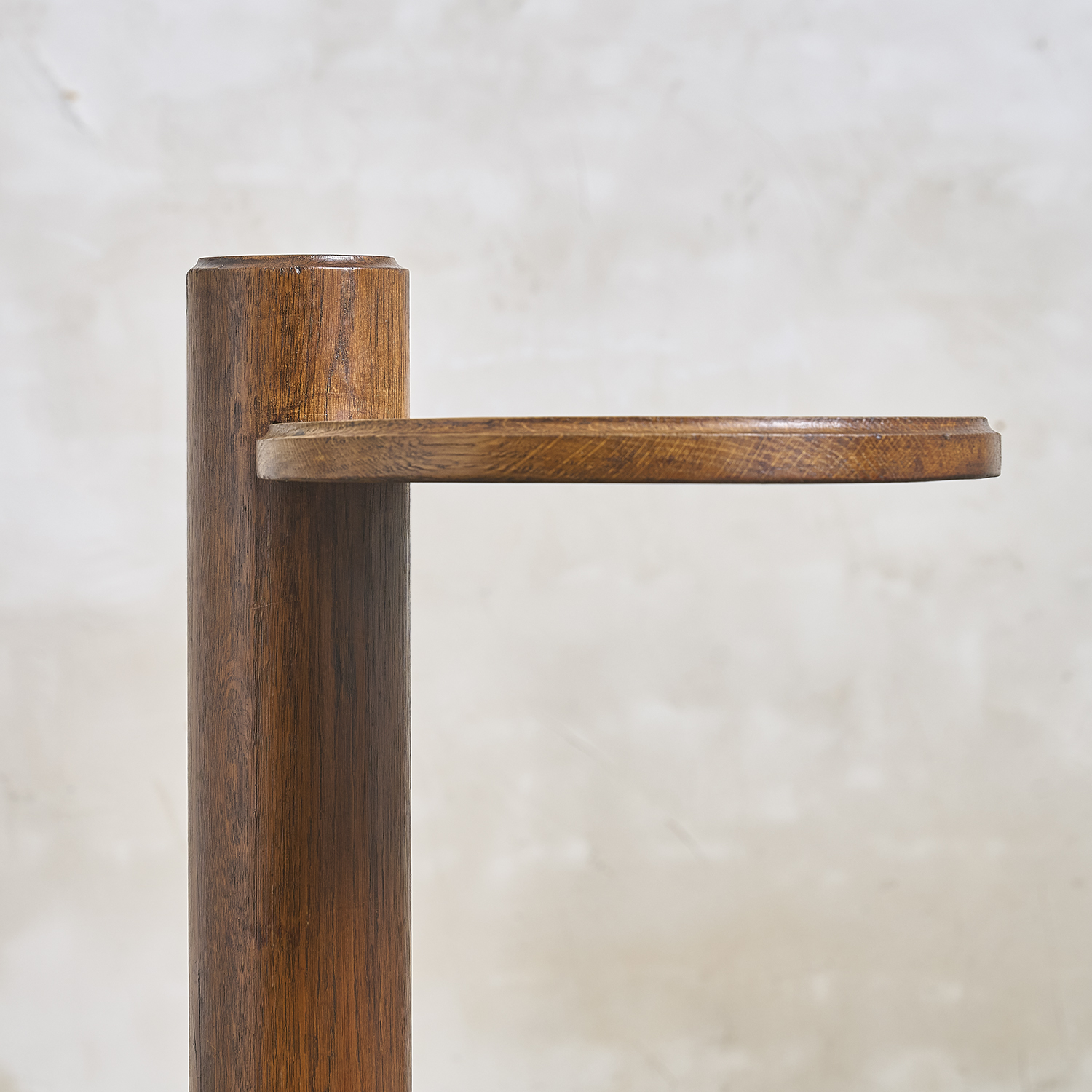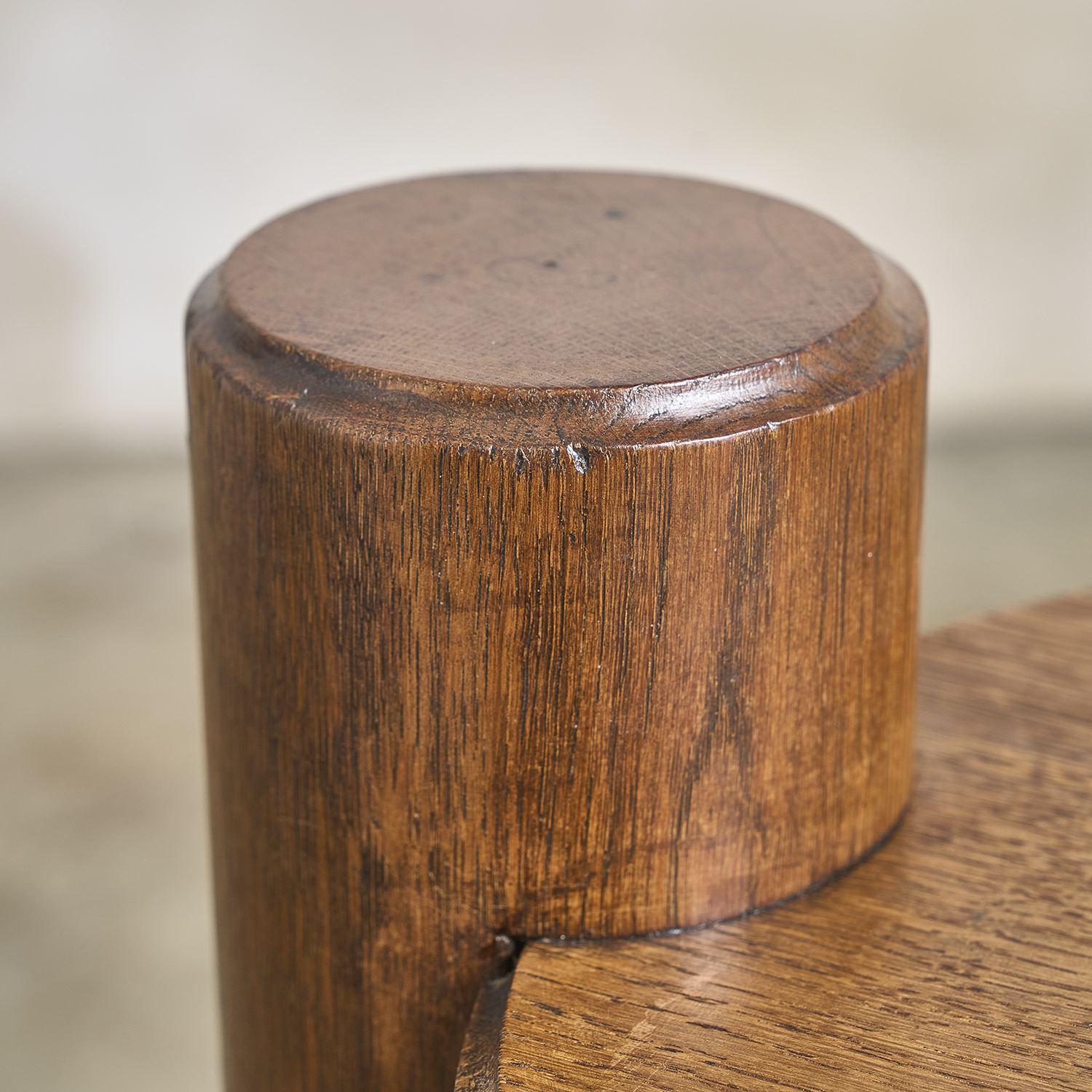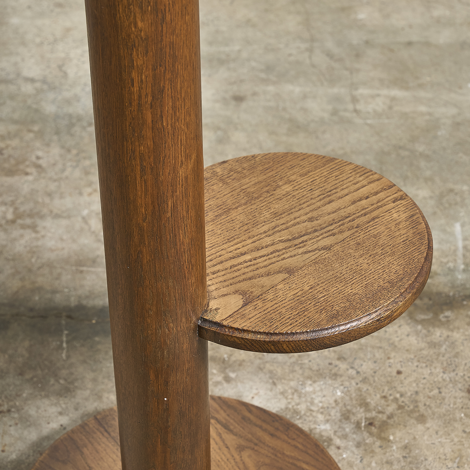 Sellette art déco en chêne à 2 plateaux circulaires, le fût de section ronde repose sur une base circulaire.
