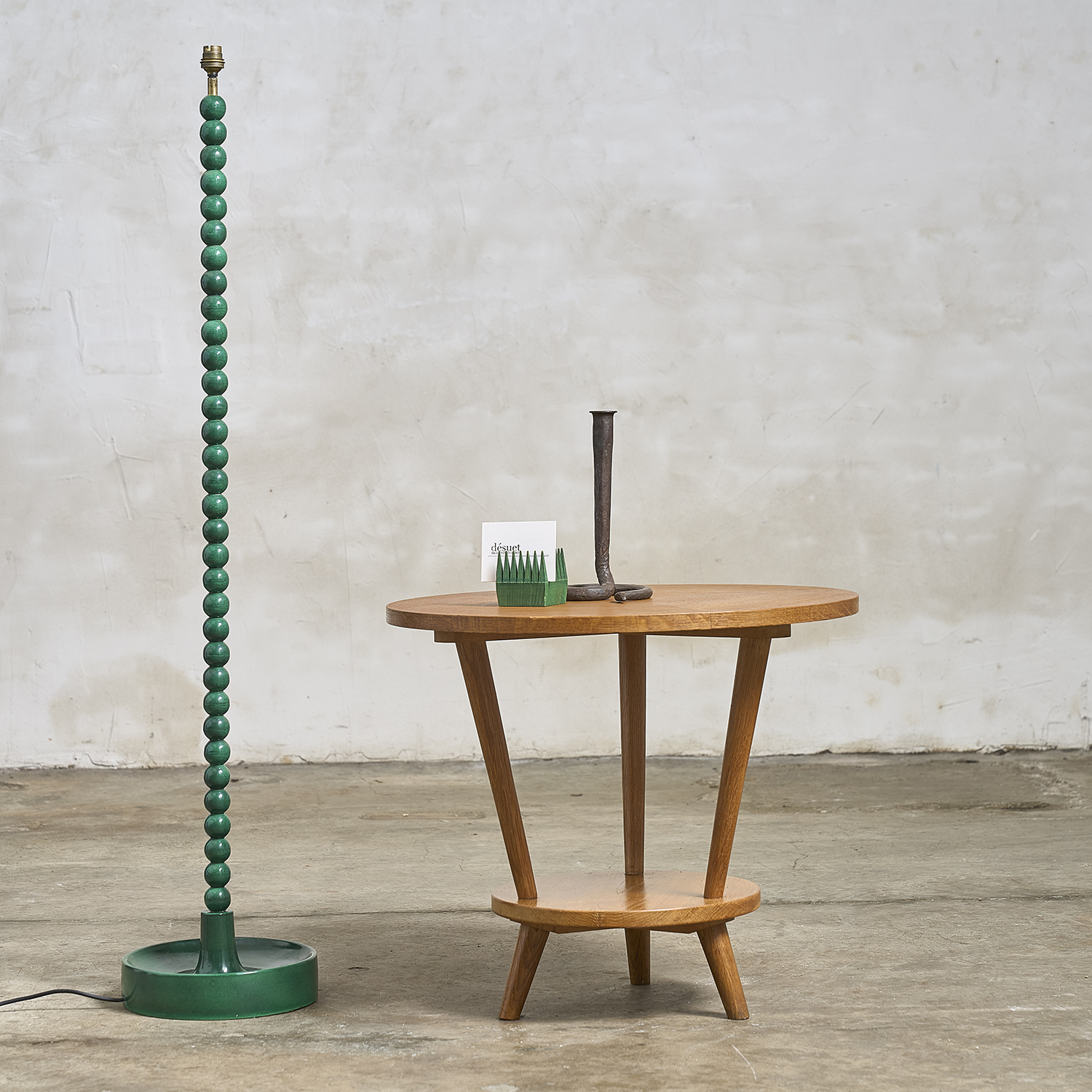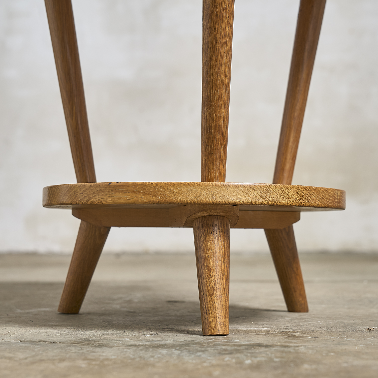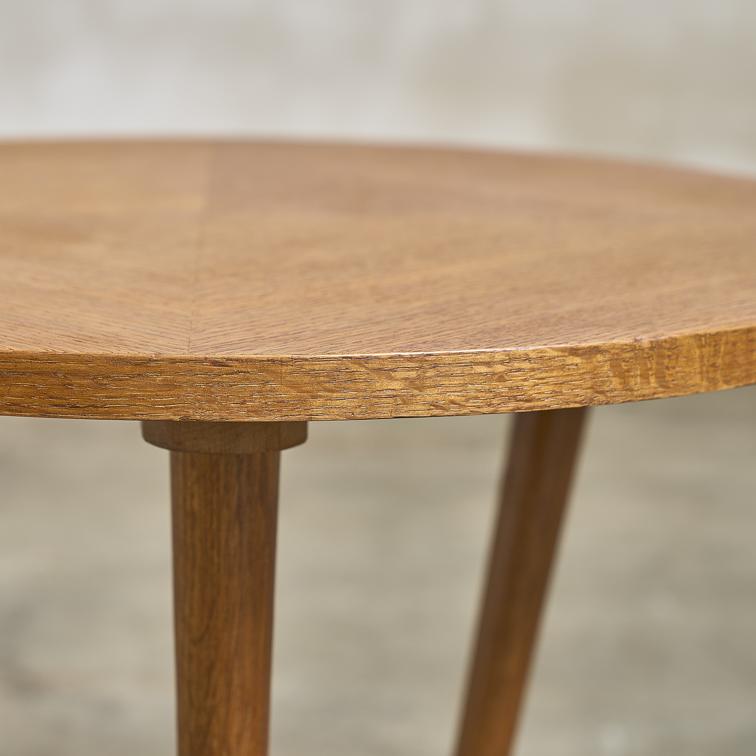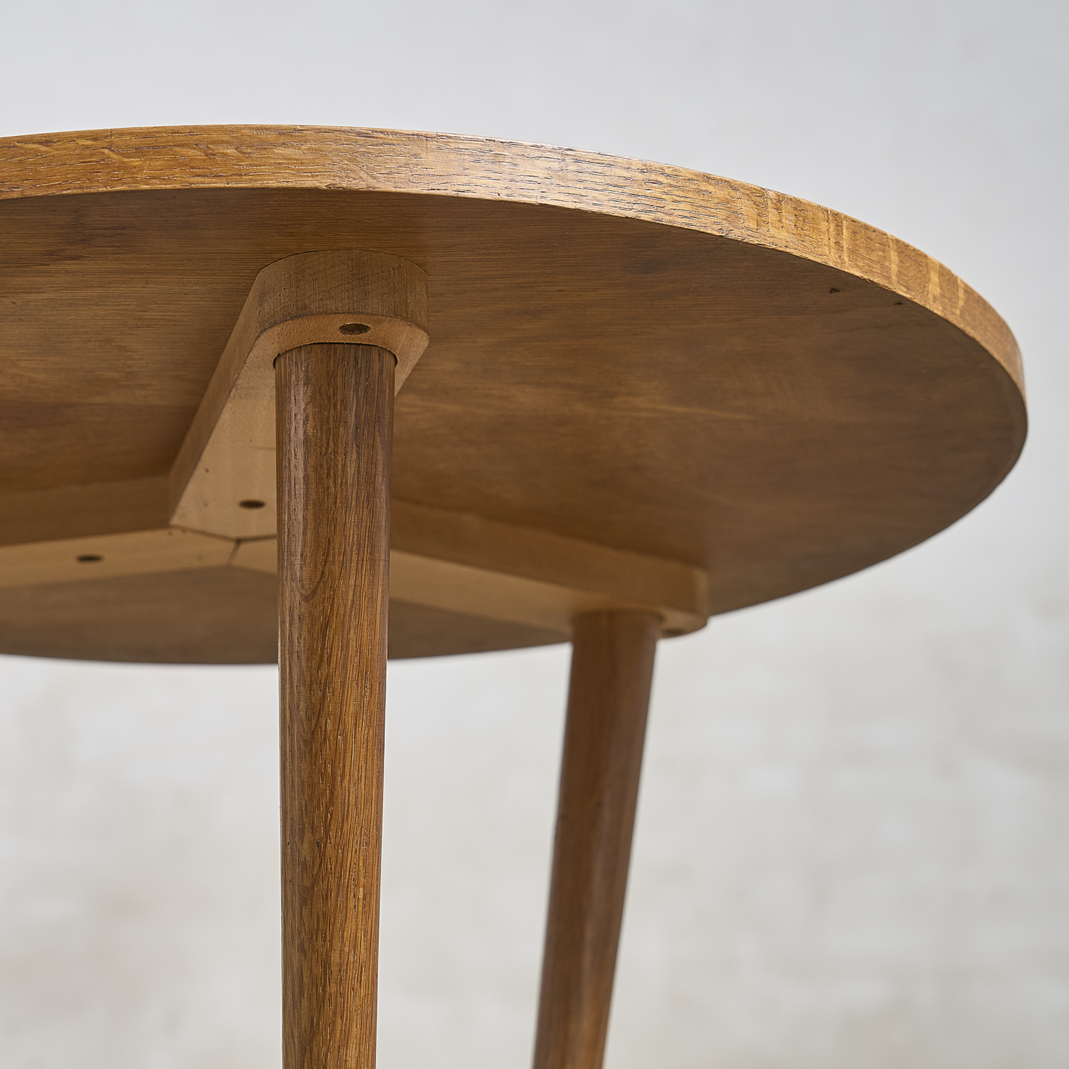 Guéridon en chêne et placage de chêne à plateaux circulaires.