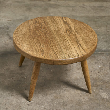 Petite table basse ronde en chêne massif reposant sur 4 pieds fuselés, France vers 1960.